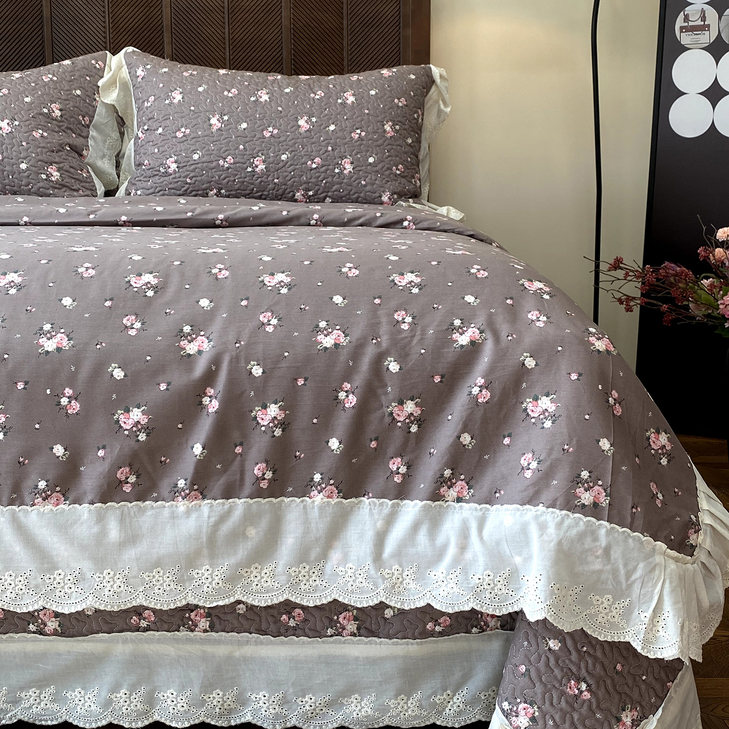 奈萝家纺 2025新款13372全棉法式大花边床盖被套四件套 山茶园