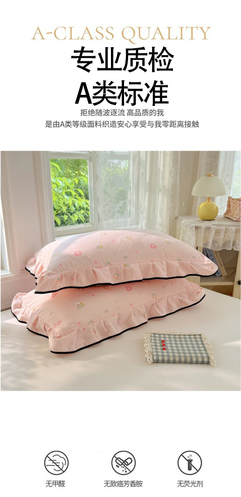 商品名称:梦舒羽 2025新款云感双层纱花边枕套宿舍学生48x74一对枕芯内胆套 花田小兔