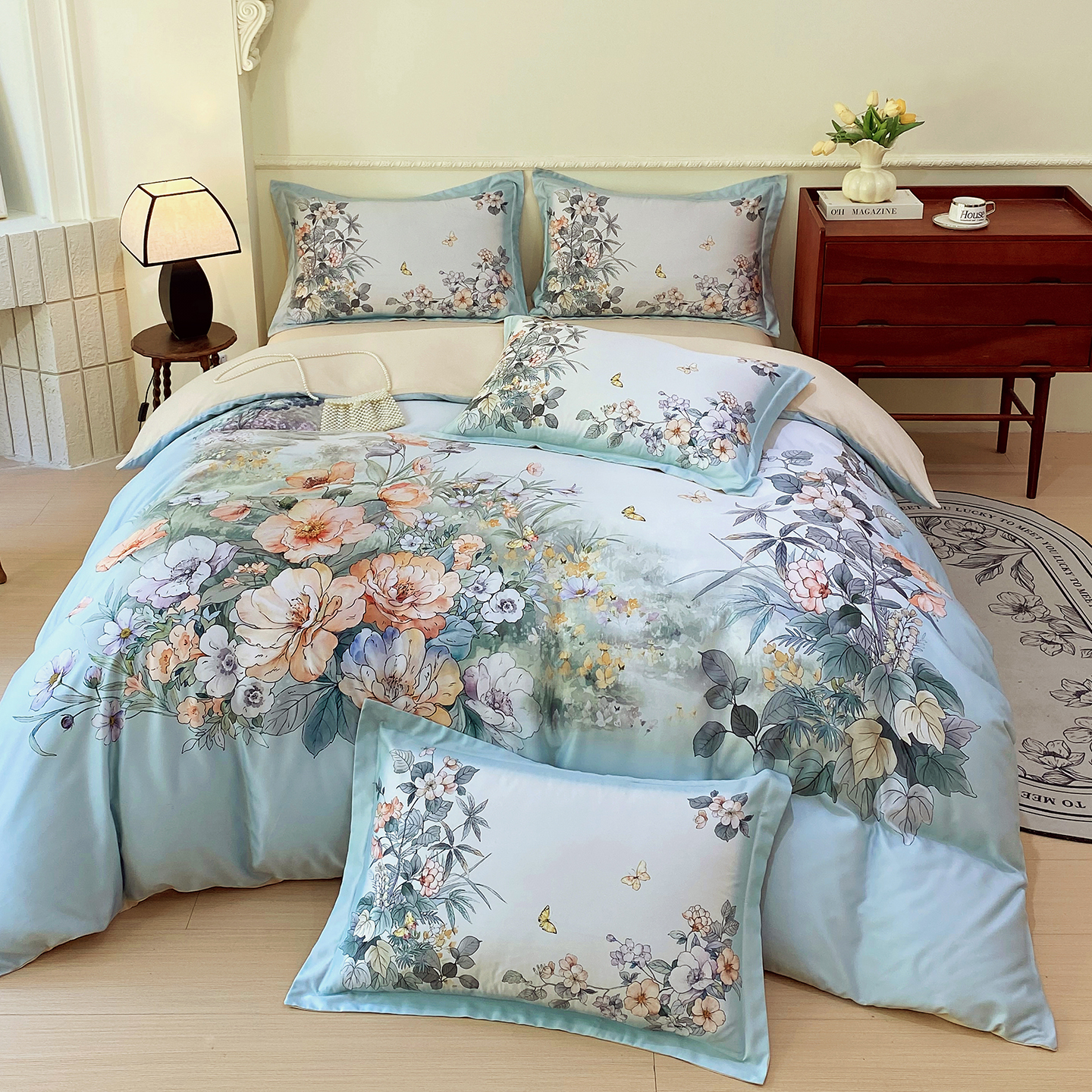 (总)大麦乐田 2025新款珍珠棉大版印花四件套,境澜-玉,若芸-紫,境澜-灰,花涧-粉,境涧-紫,芳华-紫,若芸-粉,芳华-黄,花涧-桔,梦谷-粉,梦谷-绿
