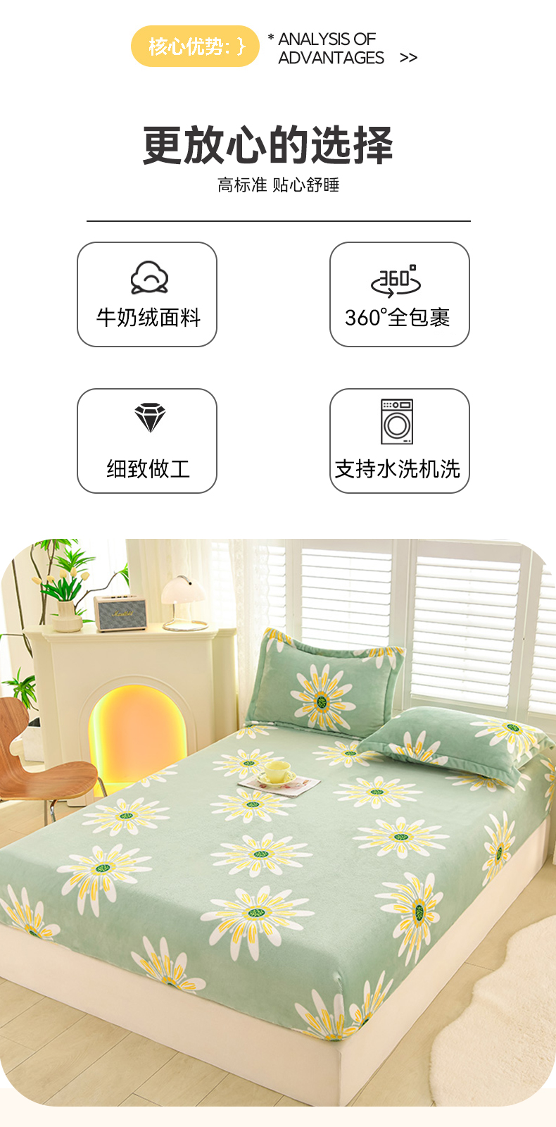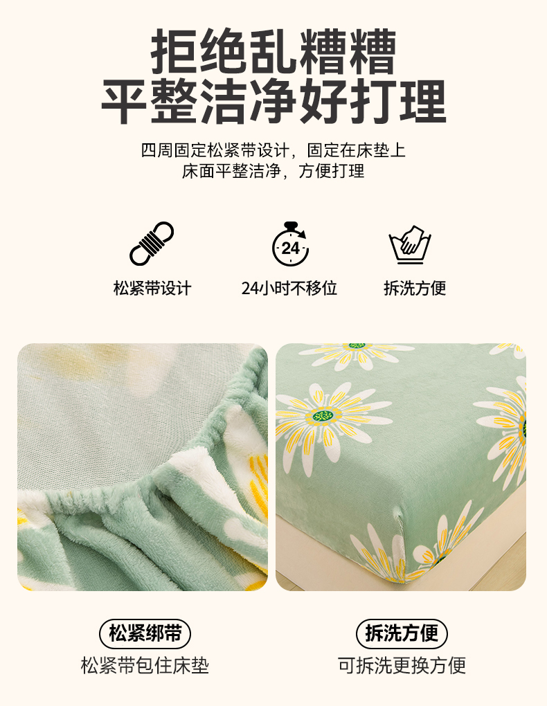 商品名称:圣楚家纺 2025新款牛奶绒床笠 冬日暖阳