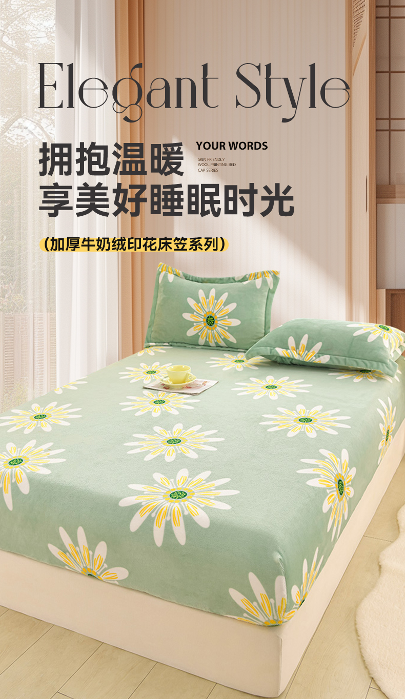 圣楚家纺 2025新款牛奶绒床笠 冬日暖阳