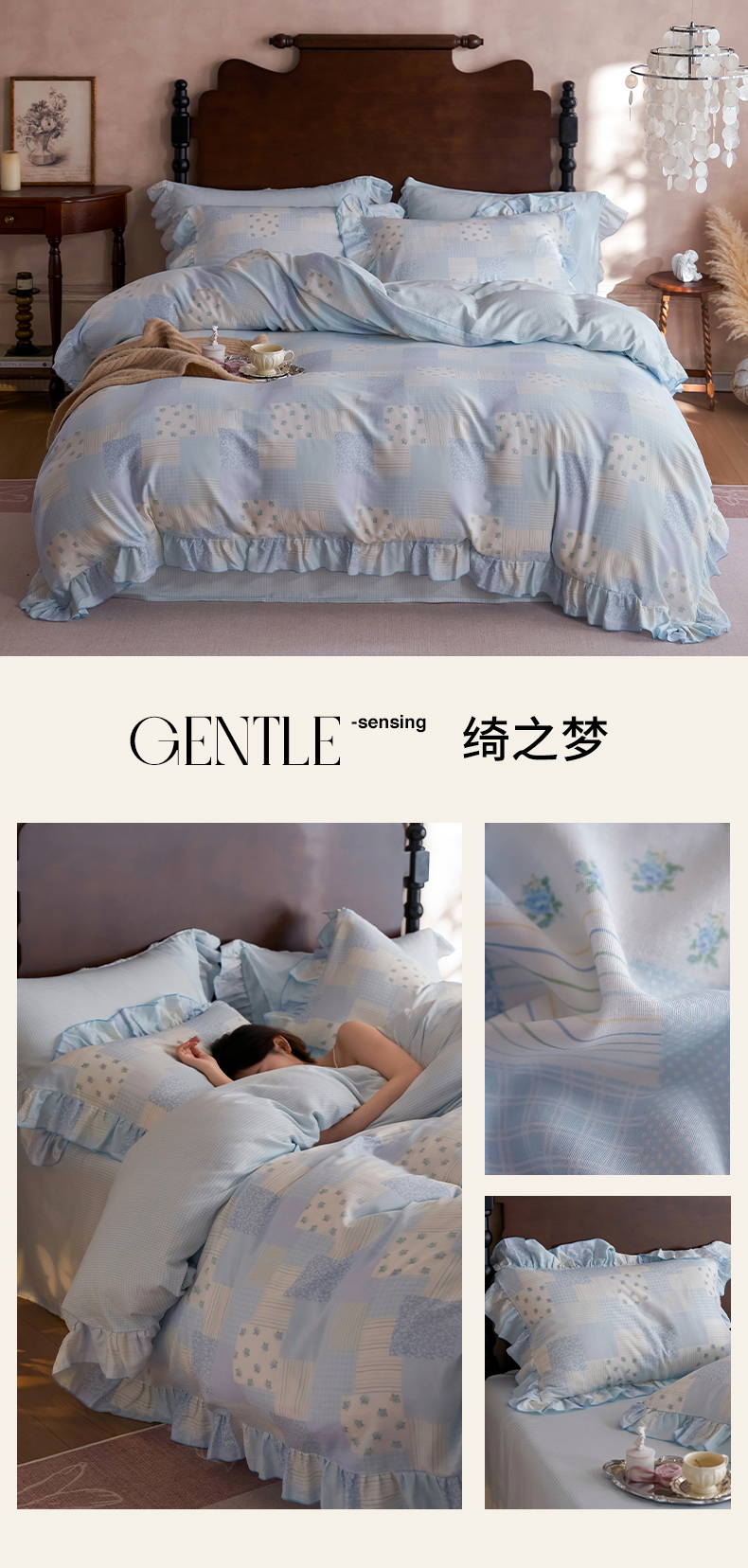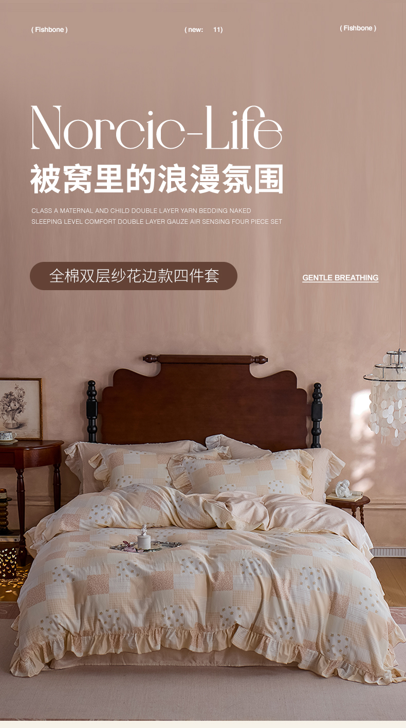 当前位置: 91家纺网 > 商品网购 > 床品套件 > 四件套 > 双层纱四件套 > 安莱生活 2025新款全棉纯棉双层纱花边款四件套 花韵染