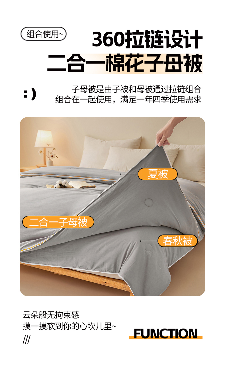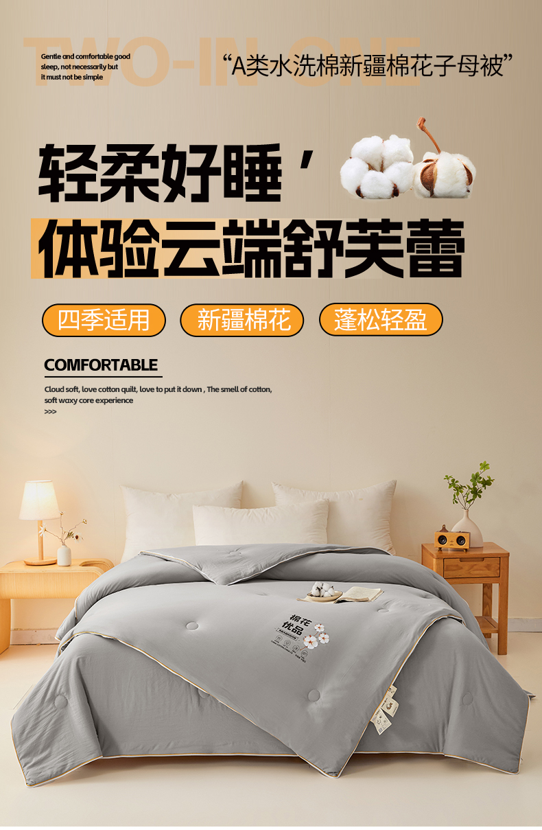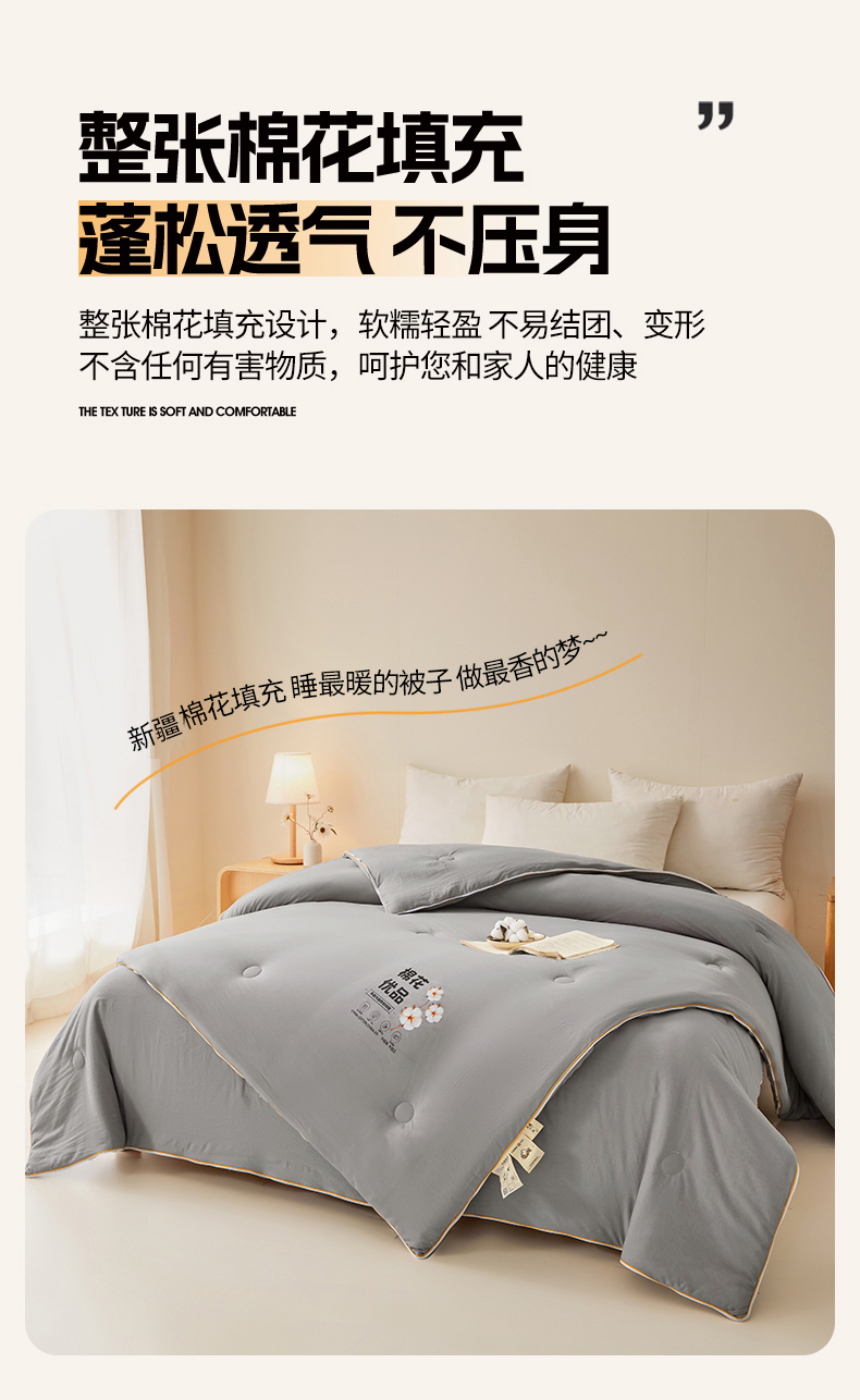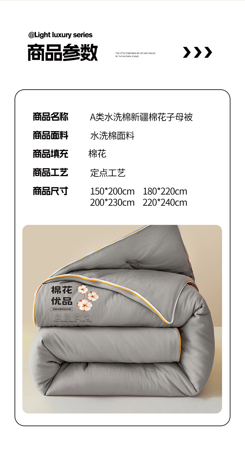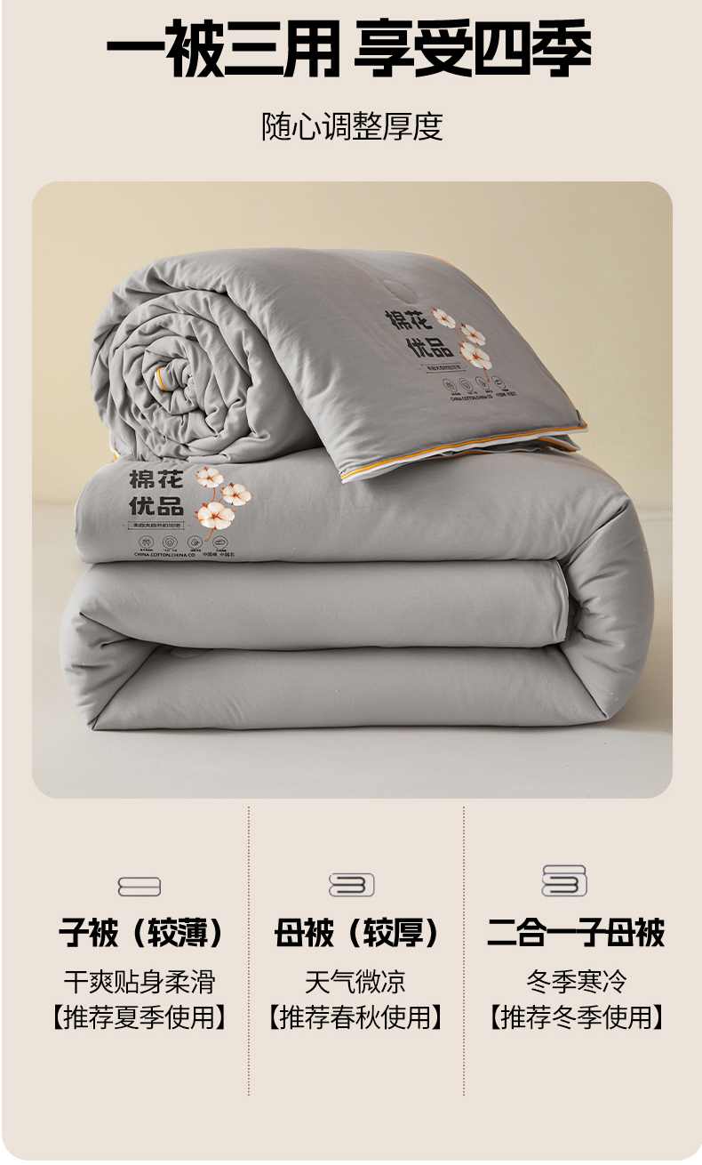 • 91家纺网 家纺一手货源 找家纺 仁凯2025新款A类棉花优品子母被 被子被芯冬被春秋被学生被(提供买家秀检测报告) 雅士灰-优品