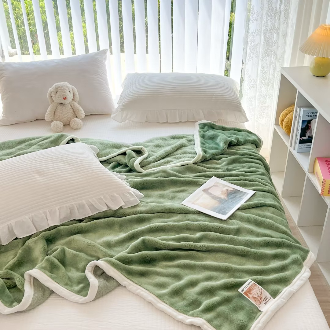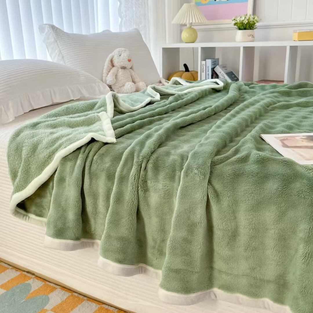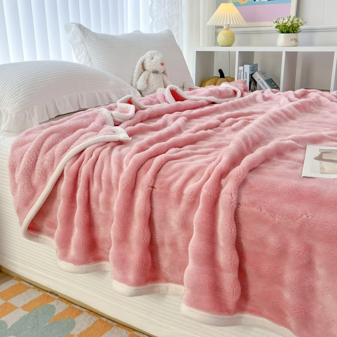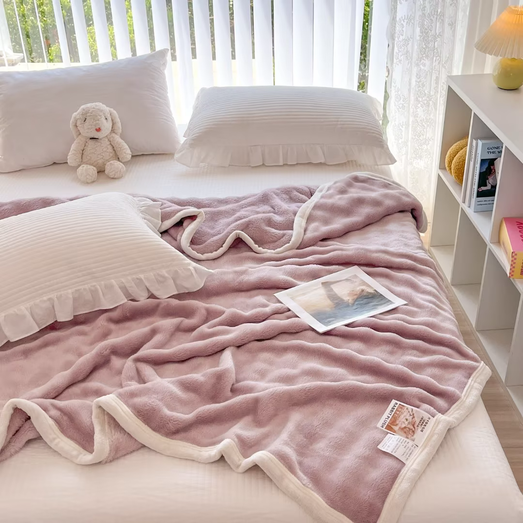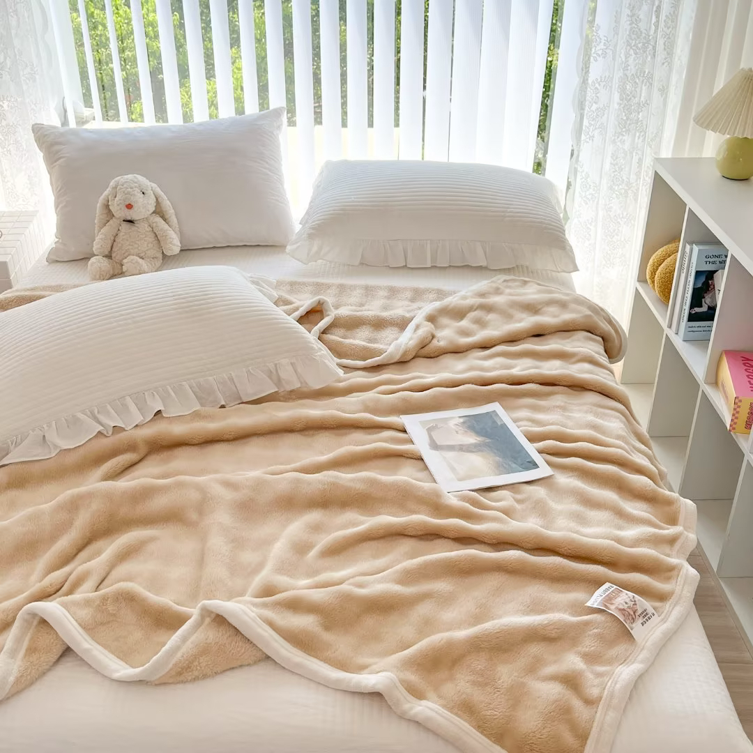 (总)归属 2025新款290克牛奶绒泡泡毯包边款盖毯可跨境,淡粉色,蓝色,卡其,烟灰色,绿色,米白,淡紫色,玉色