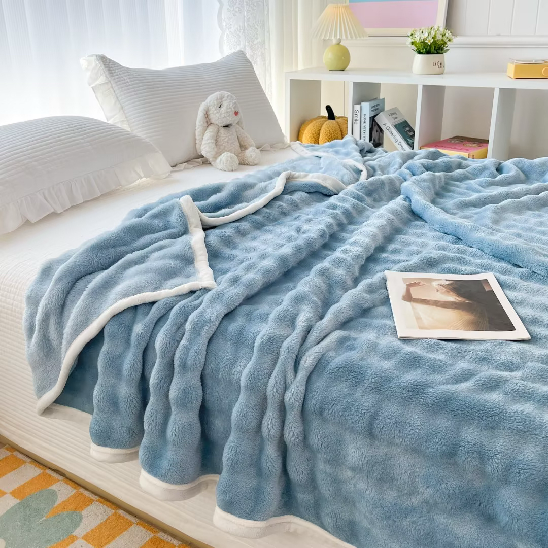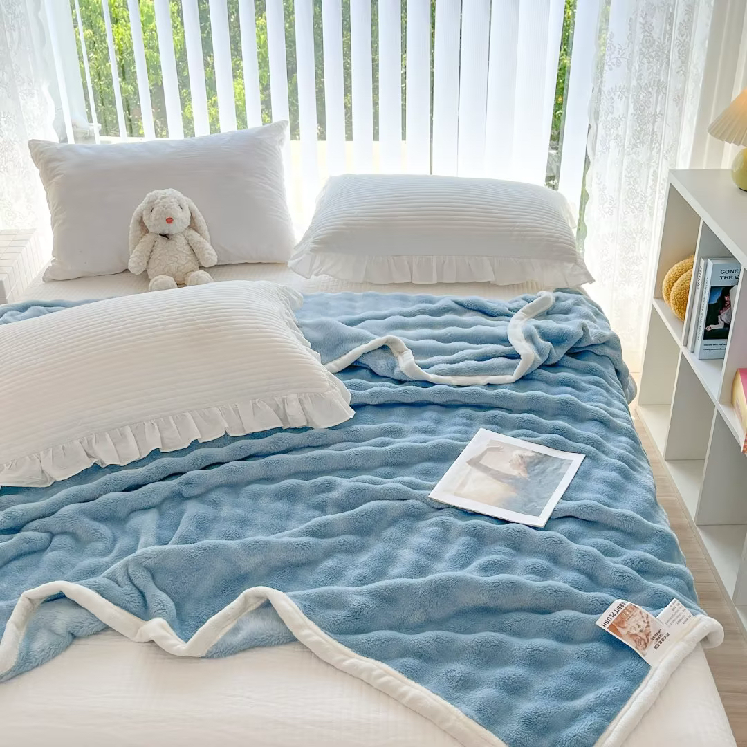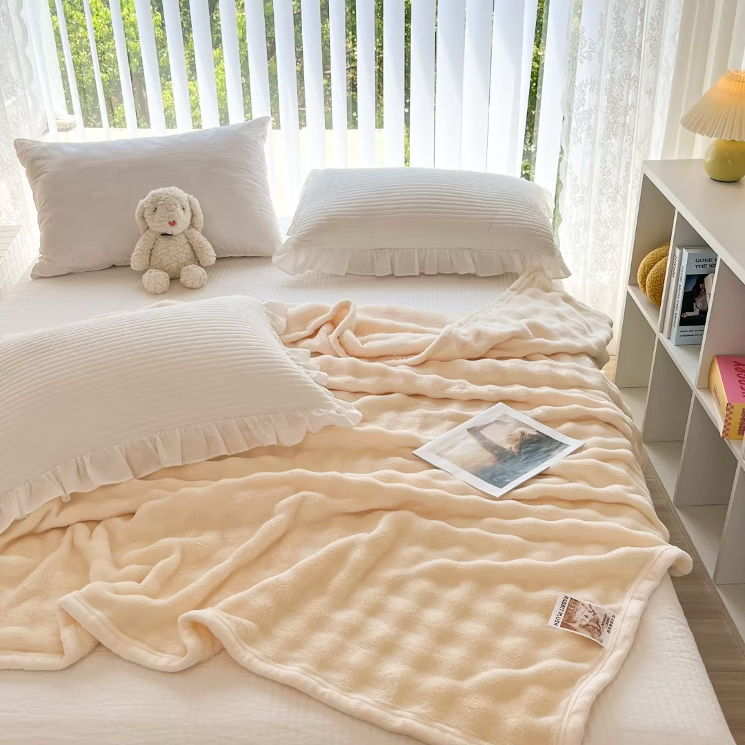 (总)归属 2025新款290克牛奶绒泡泡毯包边款盖毯可跨境