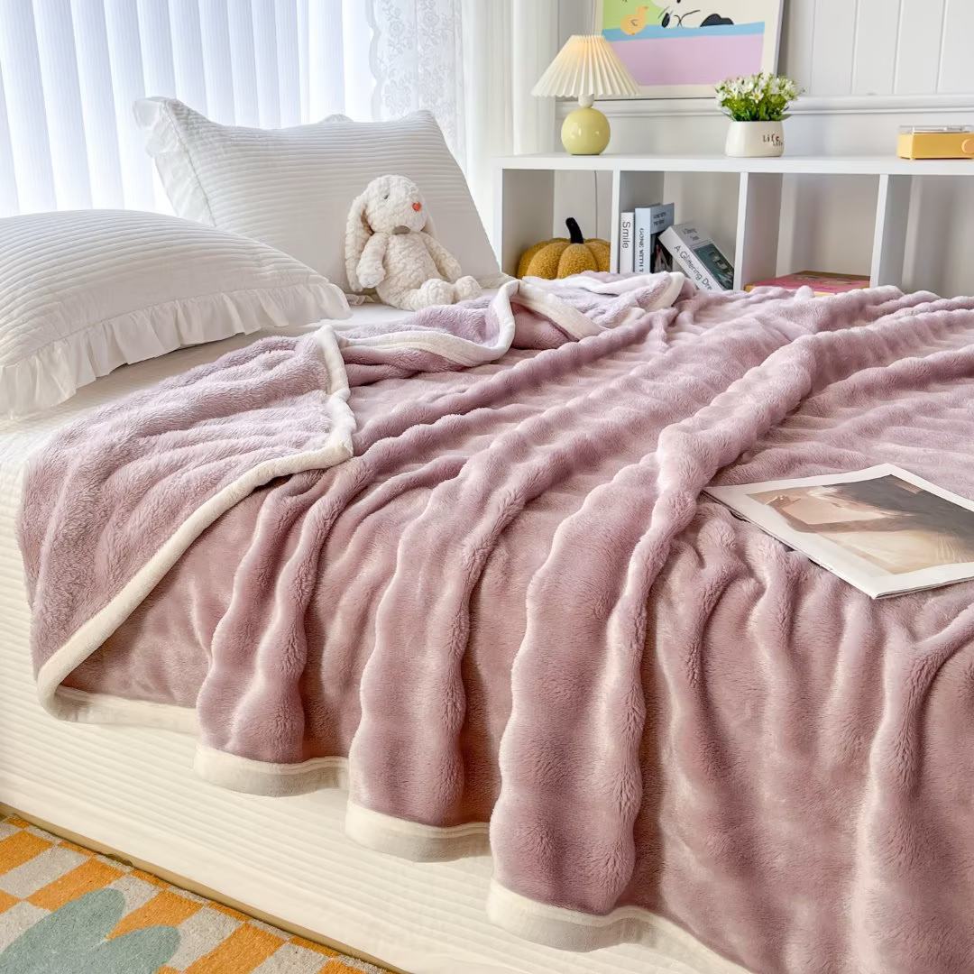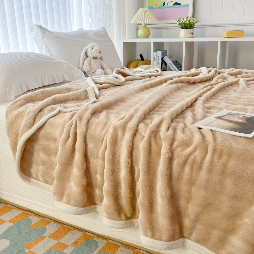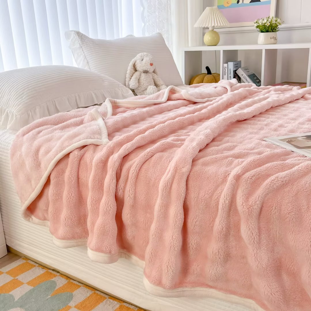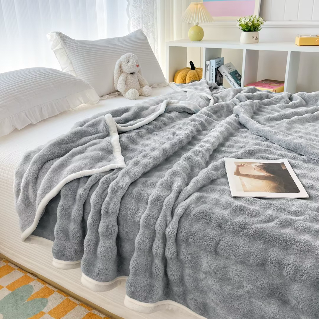 (总)归属 2025新款290克牛奶绒泡泡毯包边款盖毯可跨境