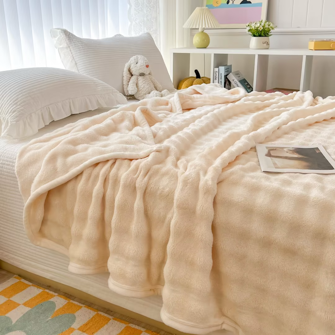商品名称:(总)归属 2025新款290克牛奶绒泡泡毯包边款盖毯可跨境