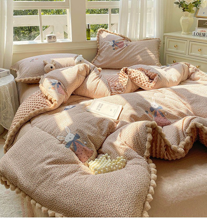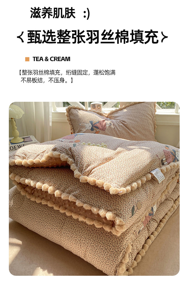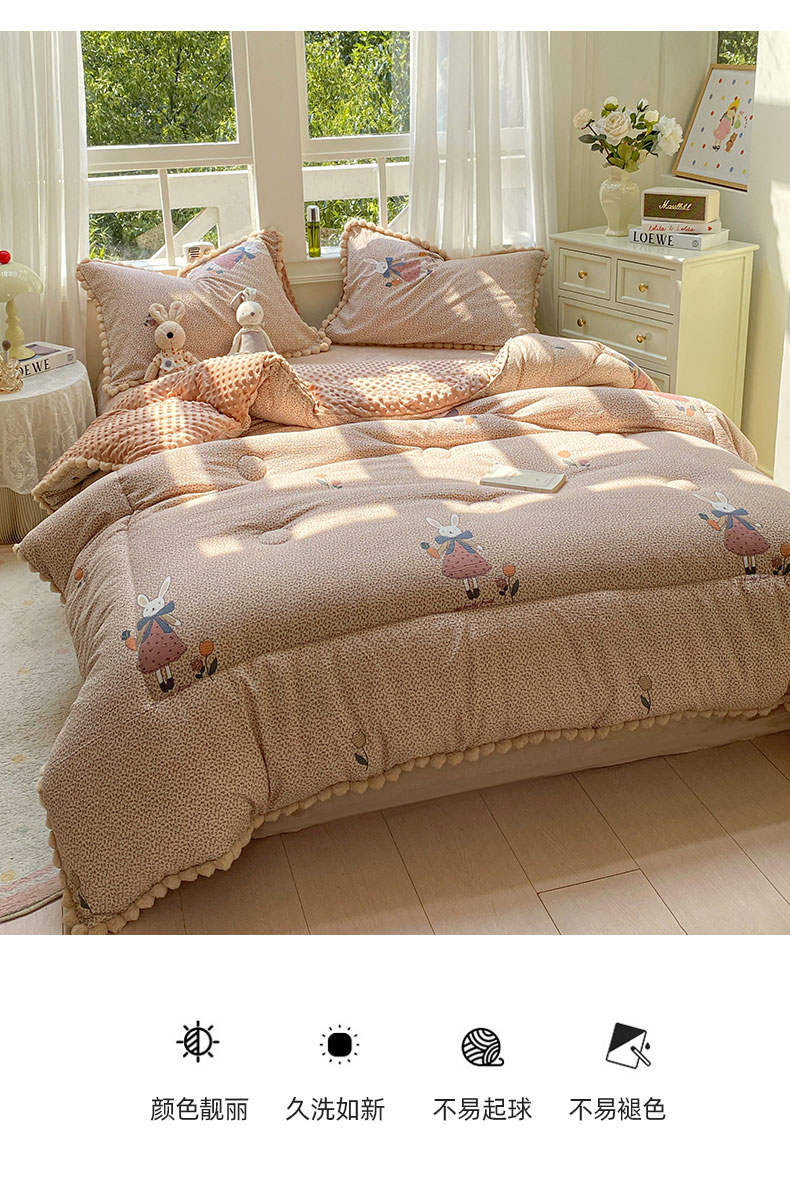• 91家纺网 家纺一手货源 找家纺 米乐被业 2025新款毛球豆豆被卡通被子被芯冬被 田园兔