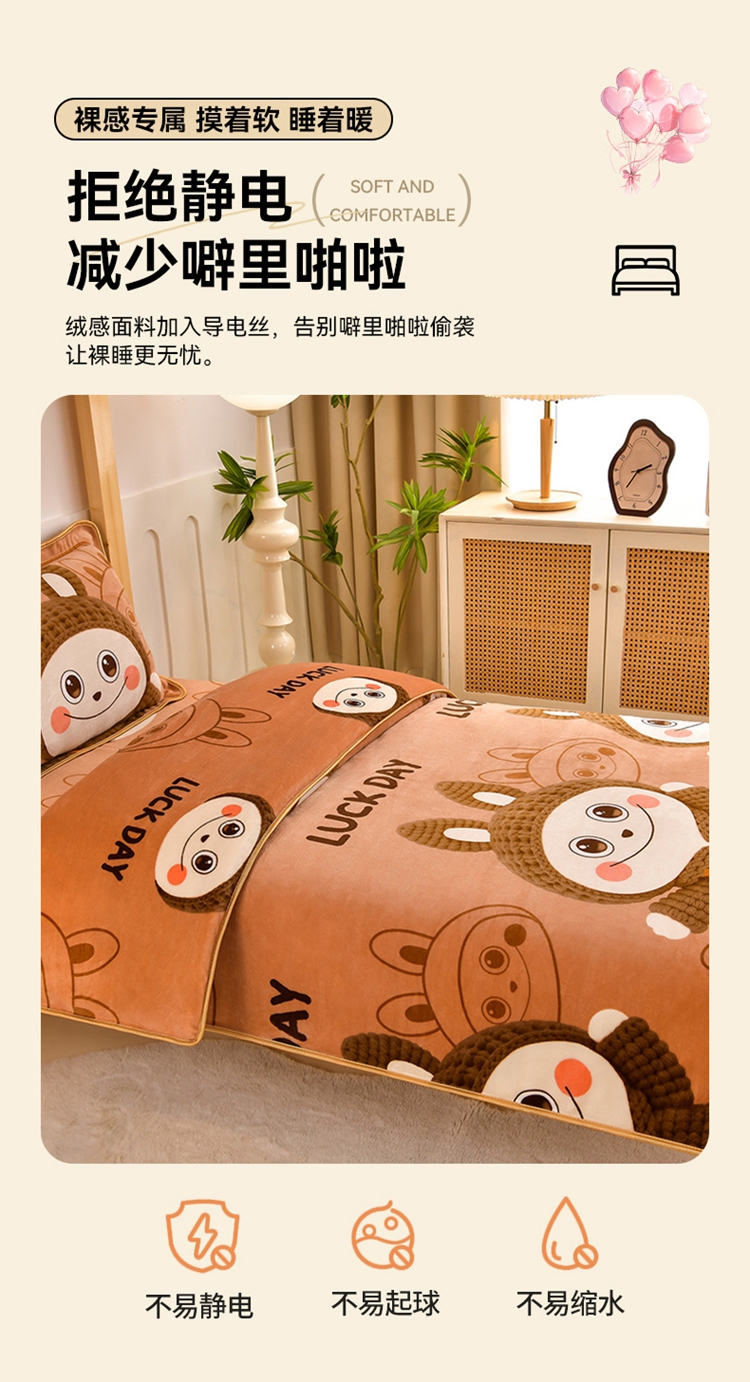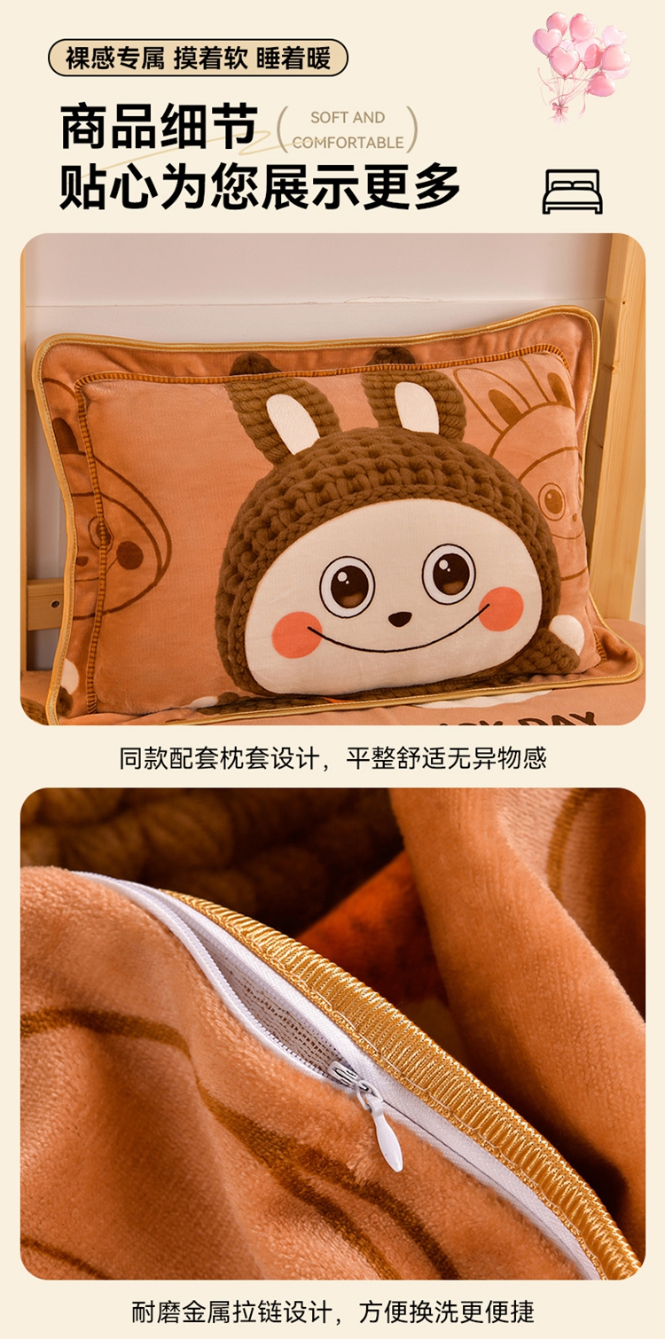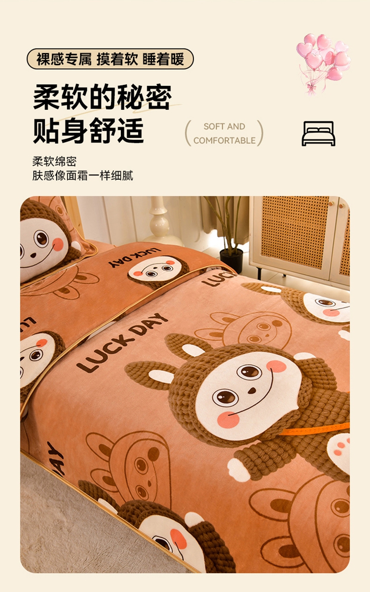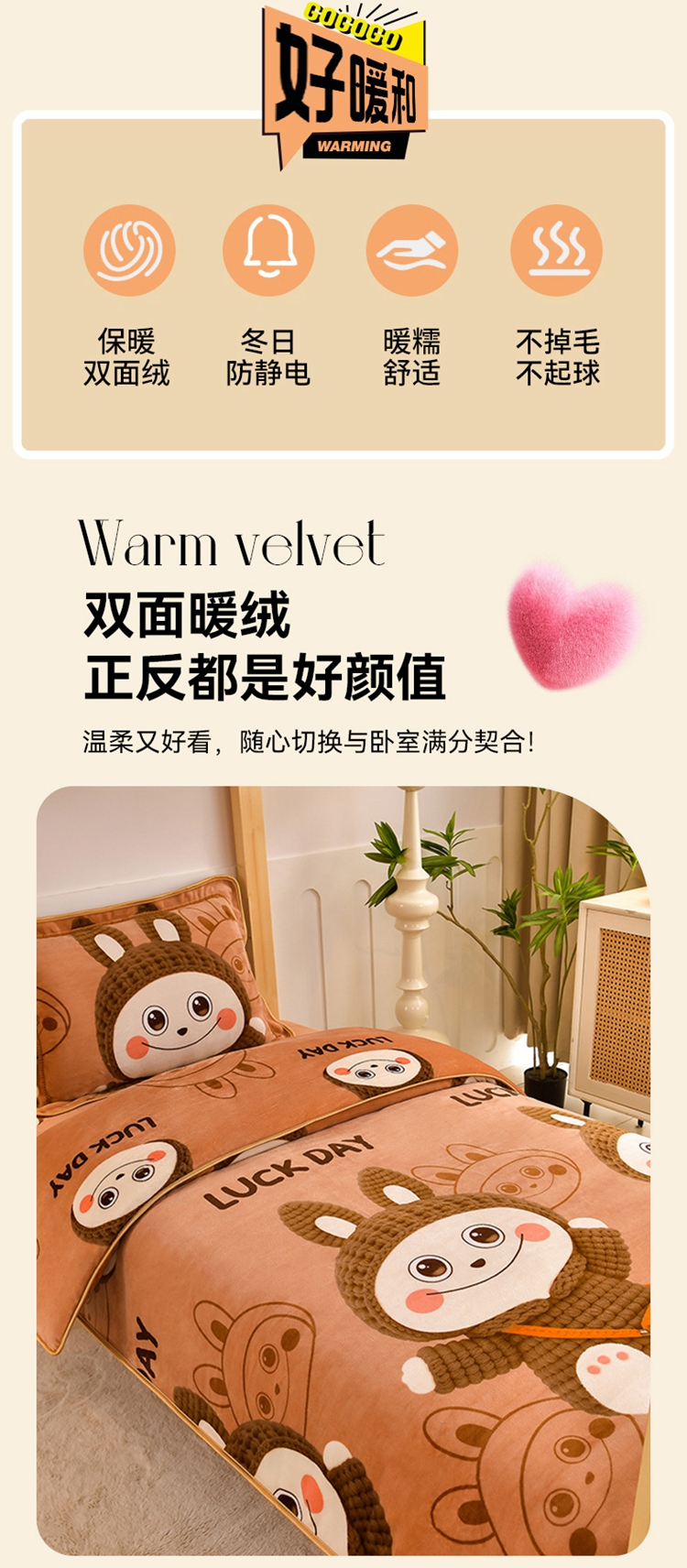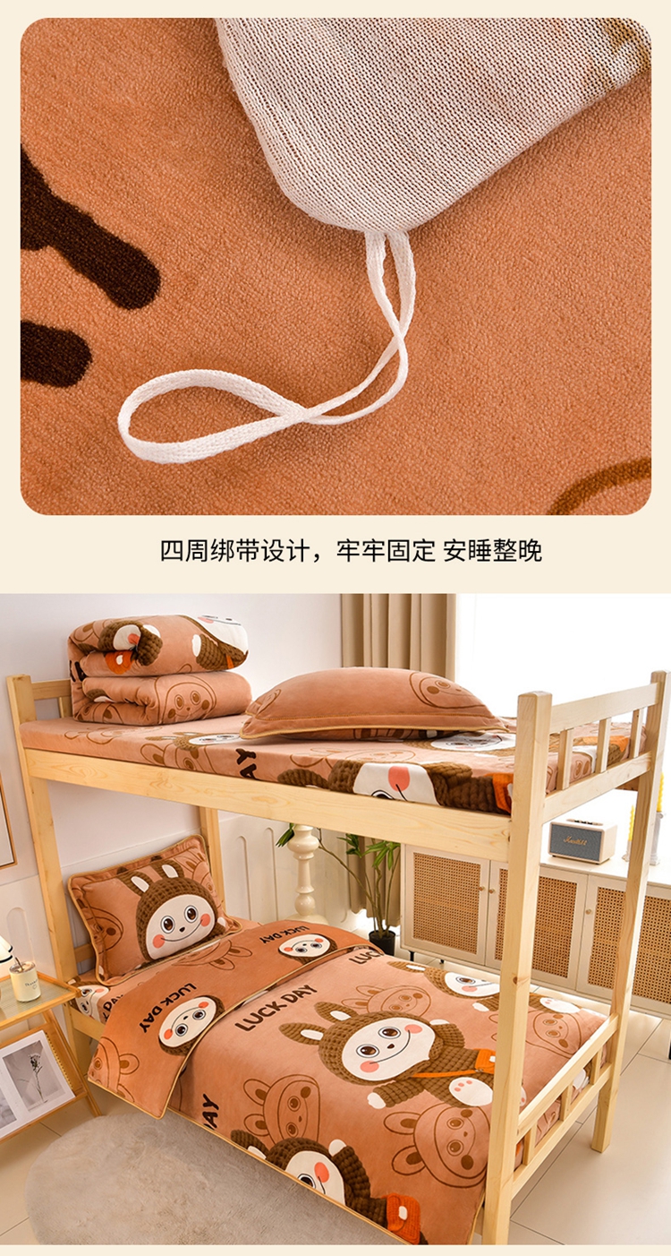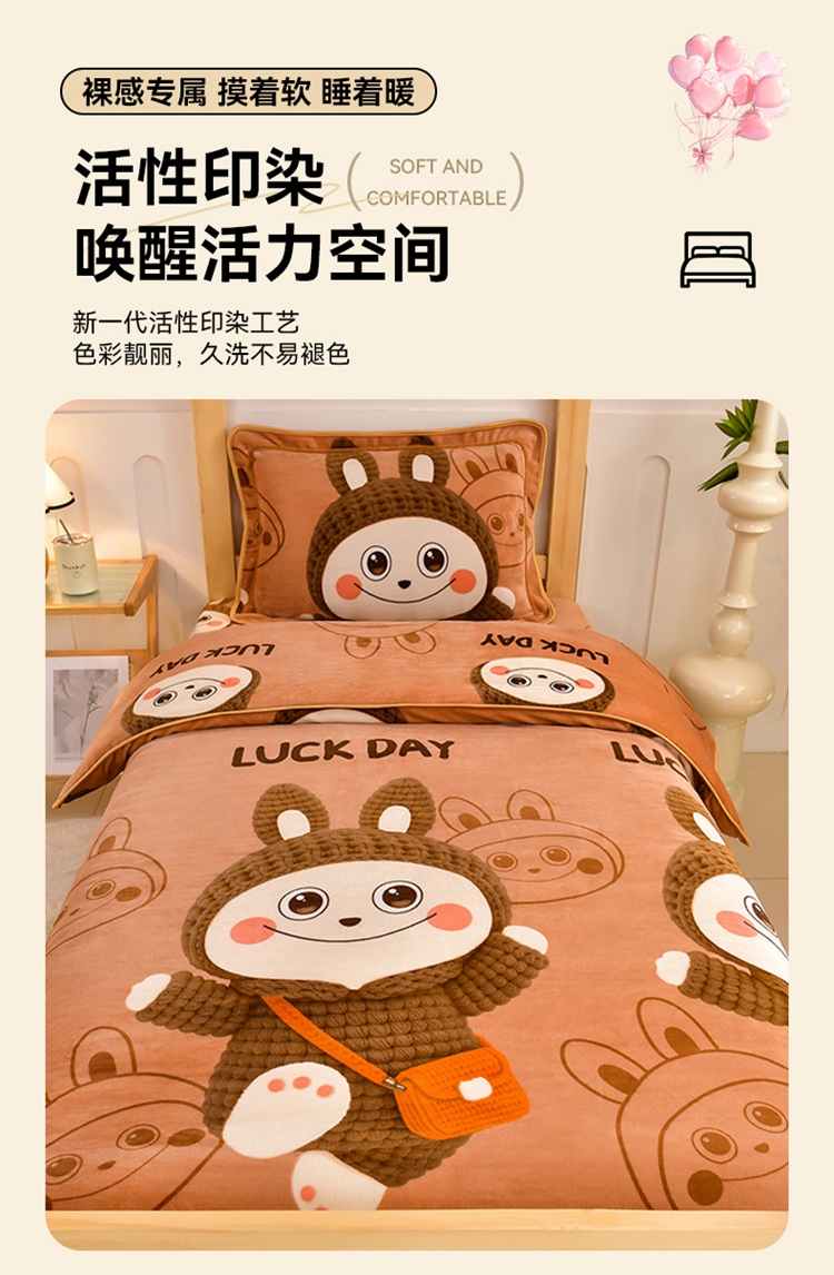馨梦缘2025新款爆款高克重印花牛奶绒法莱绒学生三件套 拉咕咕