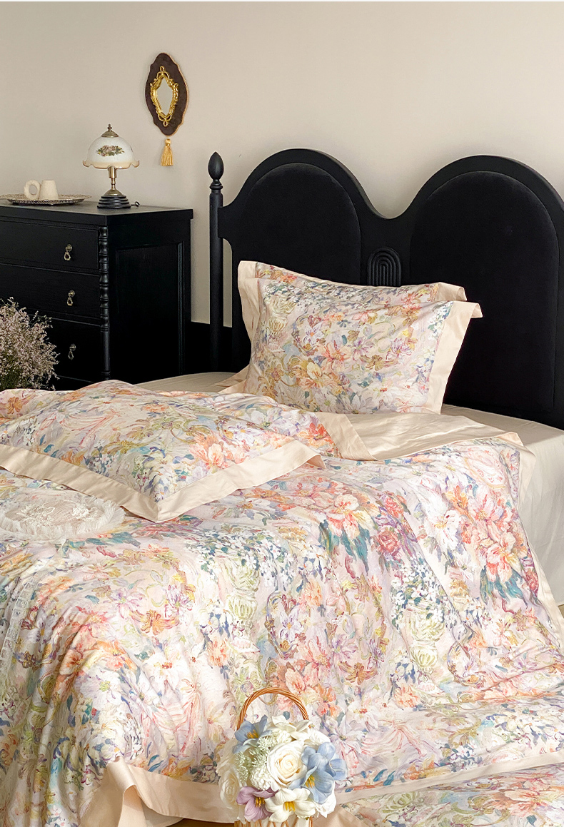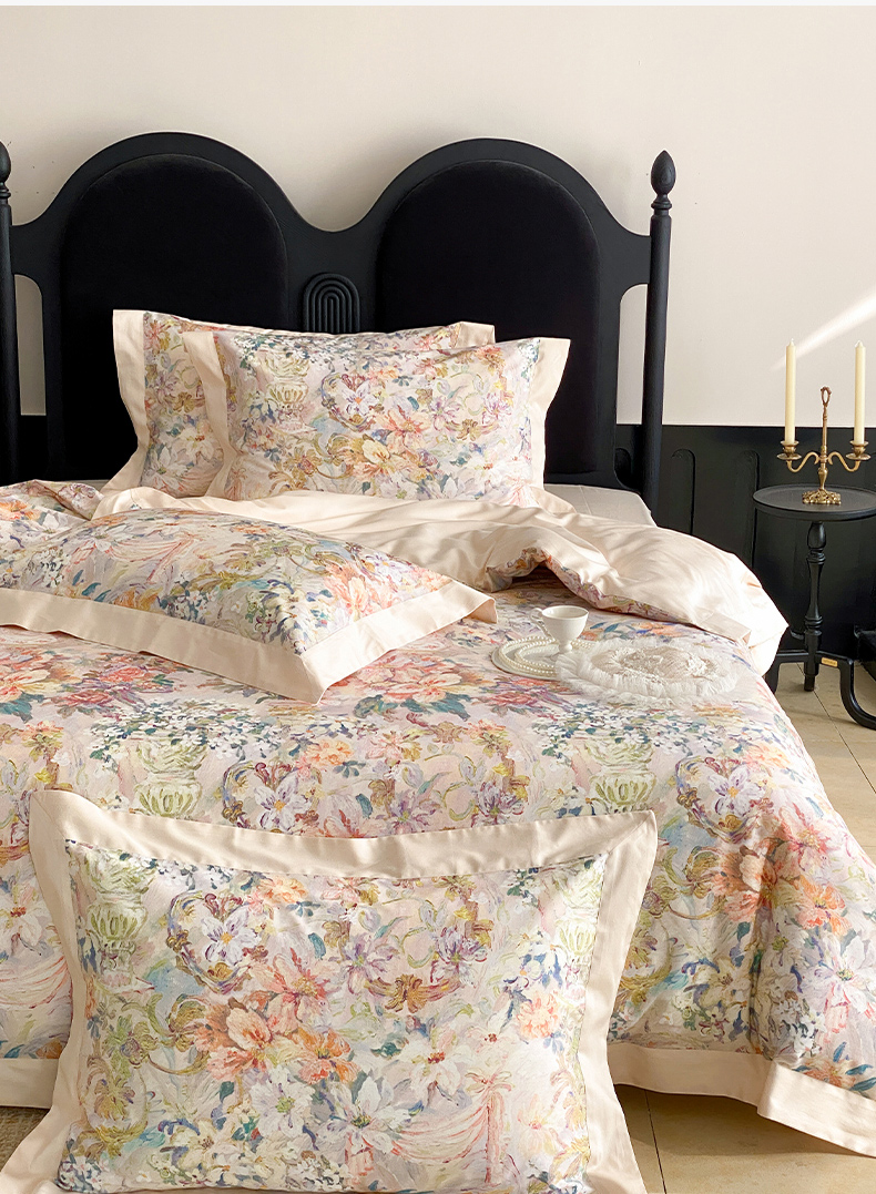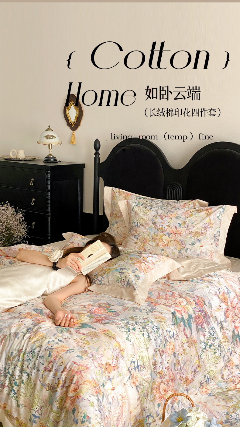云栖家居 2025全棉纯棉长绒棉纯棉A类50支数码印花系列四件套-春园 春浔花鉴-香槟