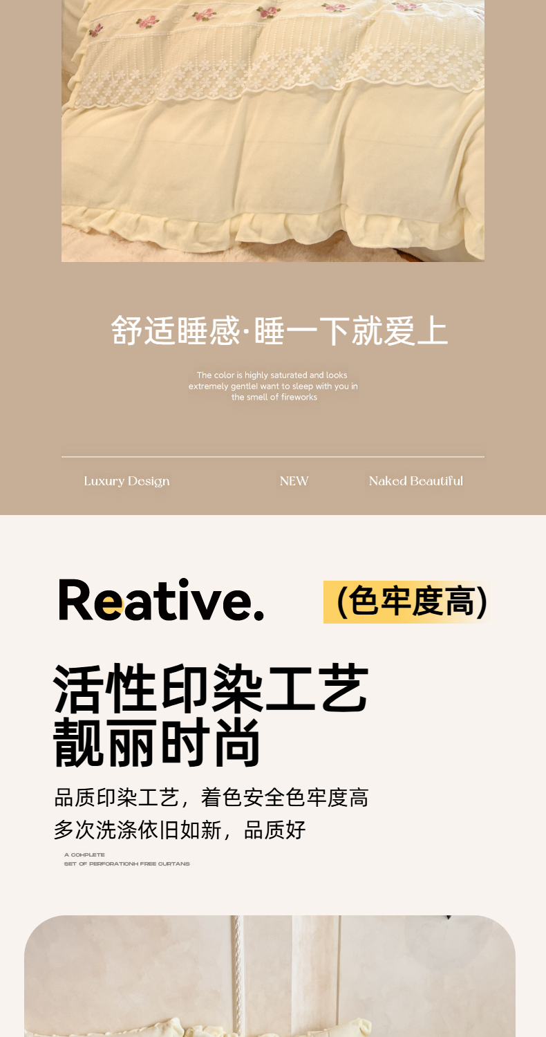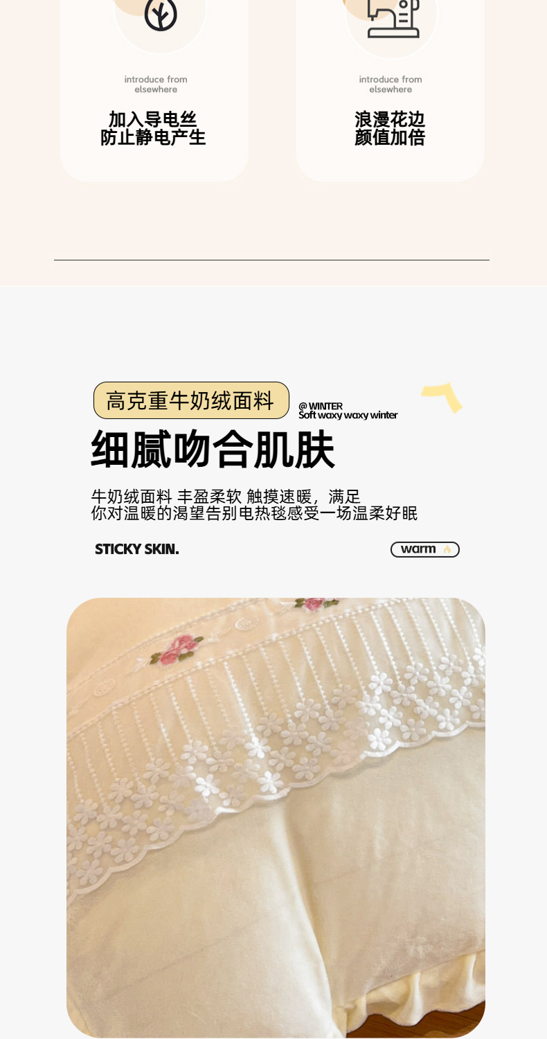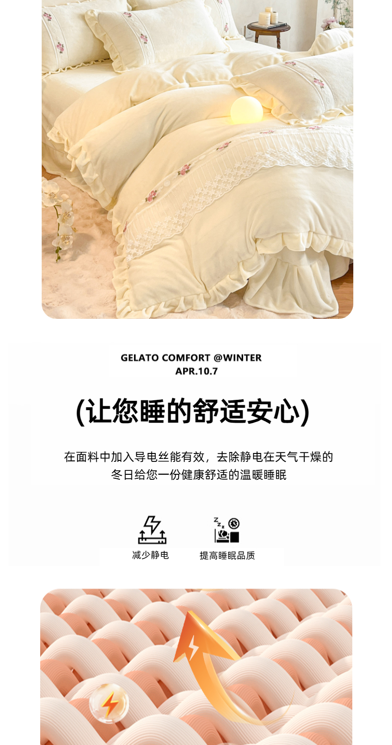 商品名称:(总)舒咪欧 2025新款绣花全消光牛奶绒宝宝绒花边四件套-可奈