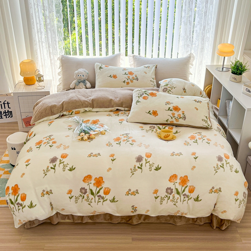 鸿羽樱(鸿羽樱)家纺 2025新款直播热款小清新牛奶绒四件套 乐园