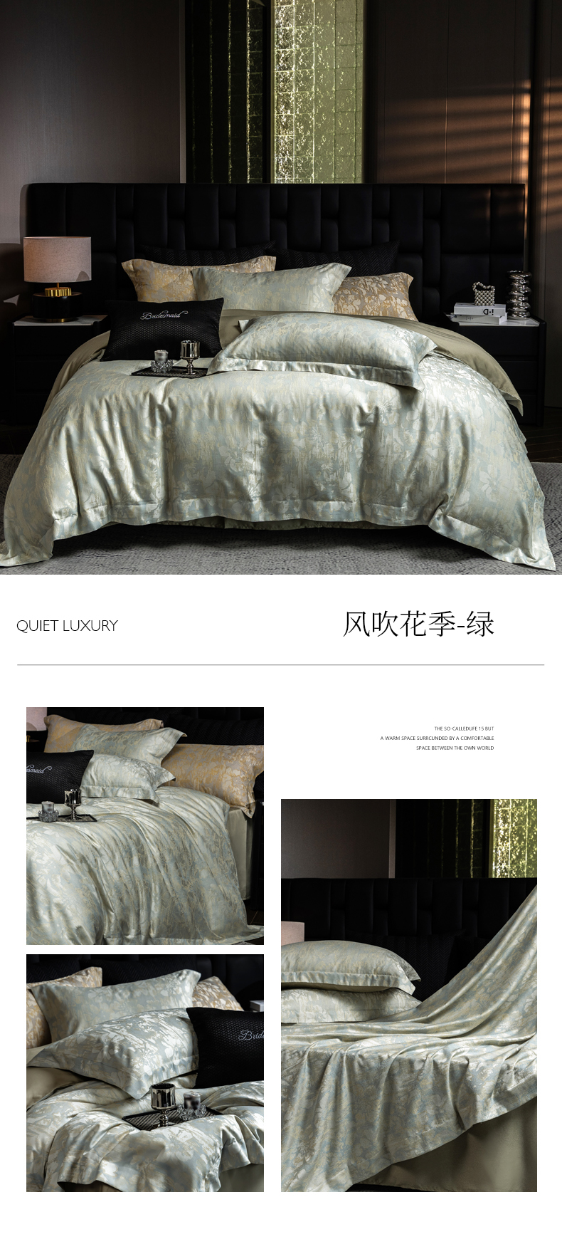 (总)立奥被业 2025新款60支全棉贡缎提花四件套,芊芊紫,豹富绿,豹纹灰,豹纹绿,米罗橙,米罗兰,飘渺灰,飘渺紫,嫣然粉,嫣然金,暗香粉,风车,渐渐,梦然蝶舞,迷蒙咖,曲曲,悠悠花语