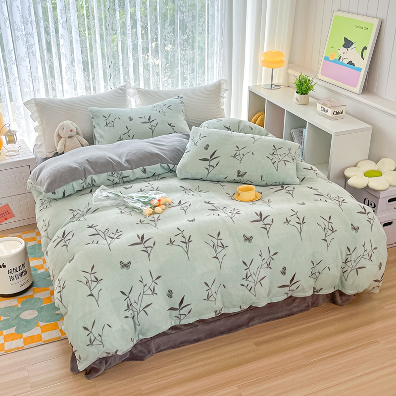 鸿羽樱(鸿羽樱)家纺 2025新款直播热款小清新牛奶绒四件套 竹影