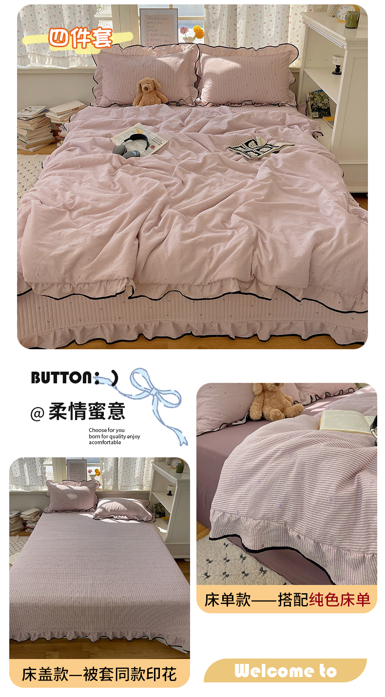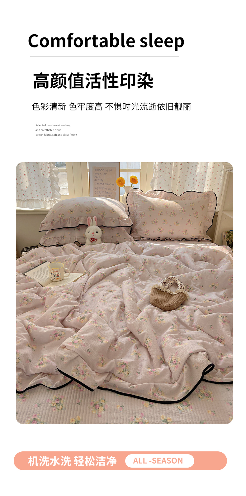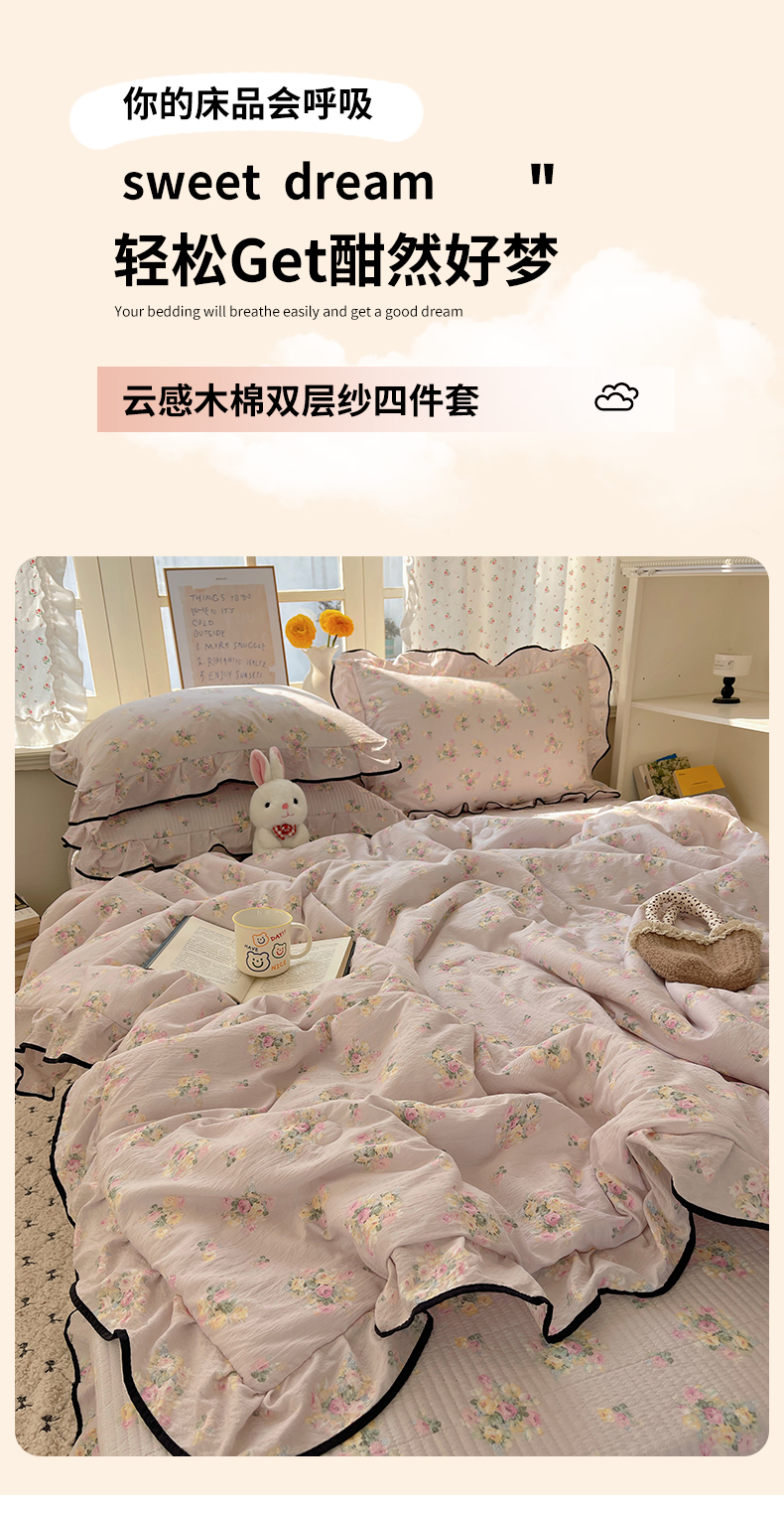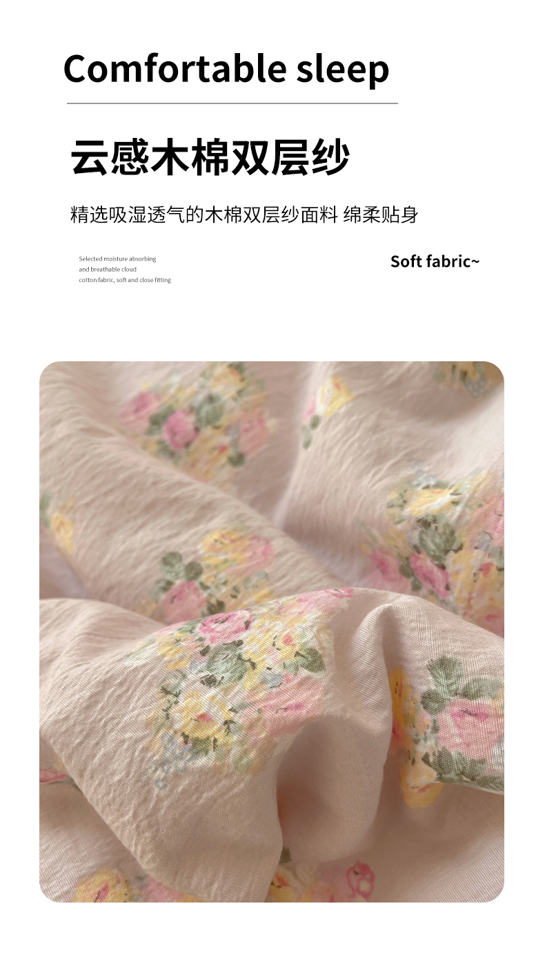 当前位置: 91家纺网 > 商品网购 > 床品套件 > 四件套 > 其它四件套 > 繁花家居 2025新款云感木棉针织棉双层纱床盖四件套 床盖被套款-倾城之韵