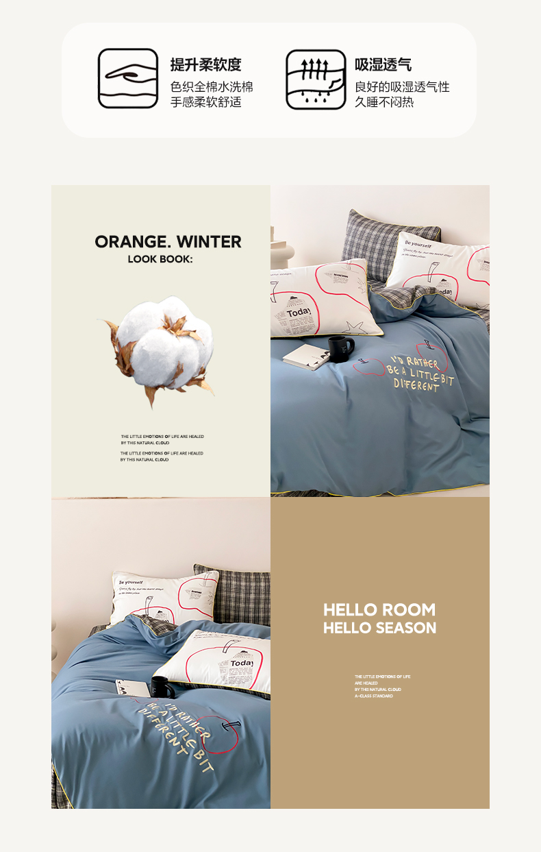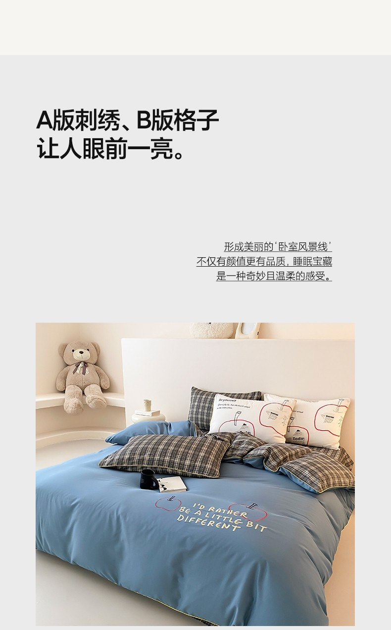 当前位置: 91家纺网 > 商品网购 > 床品套件 > 四件套 > 水洗棉四件套 > 如一 2025新款A类全棉纯棉色织水洗棉刺绣数码四件套 苹安