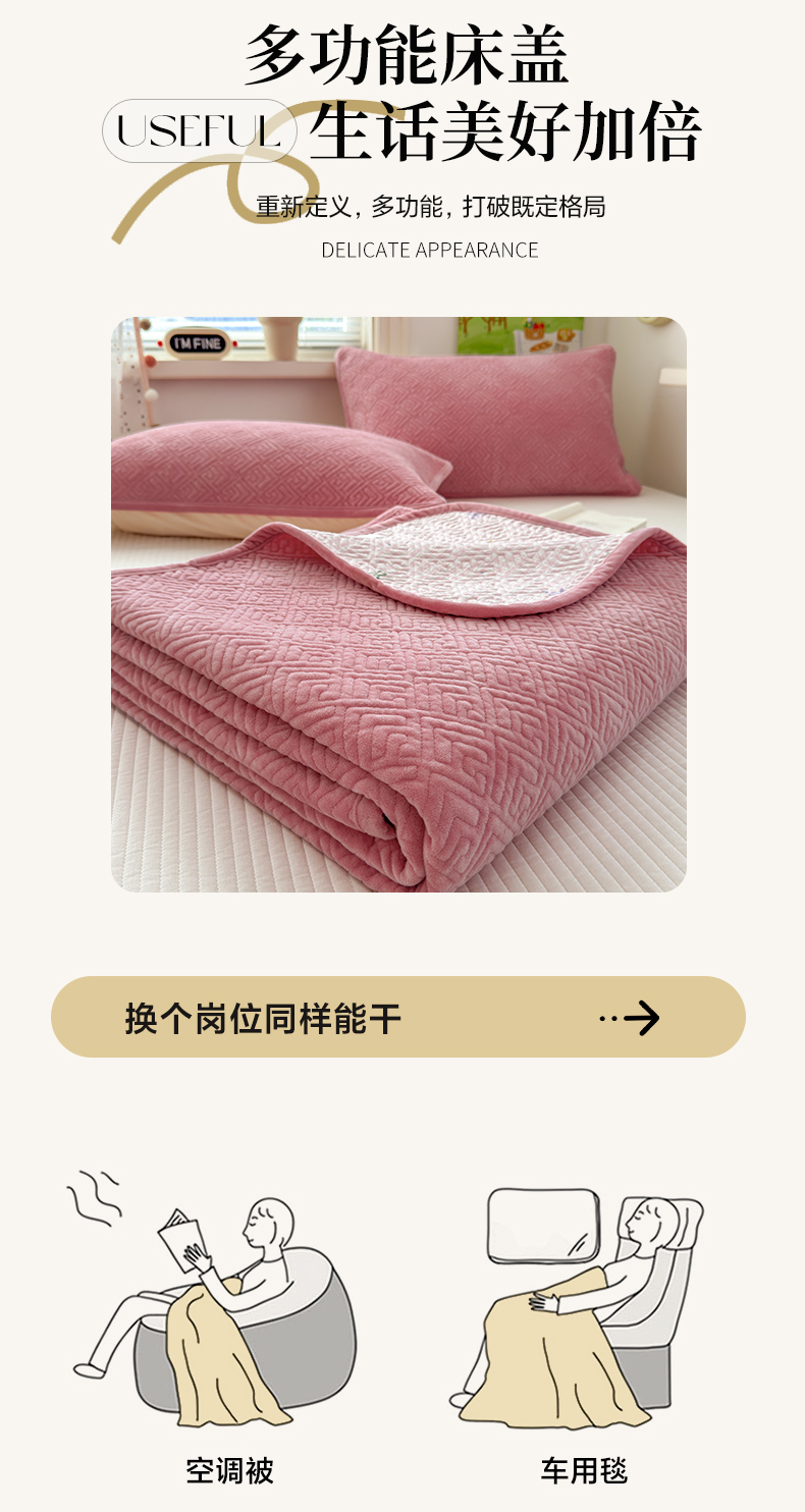 • 91家纺网 家纺一手货源 找家纺 美优兰 2025新款棉加绒高温砂洗夹棉单床盖 床盖单件 暖阳-粉黛