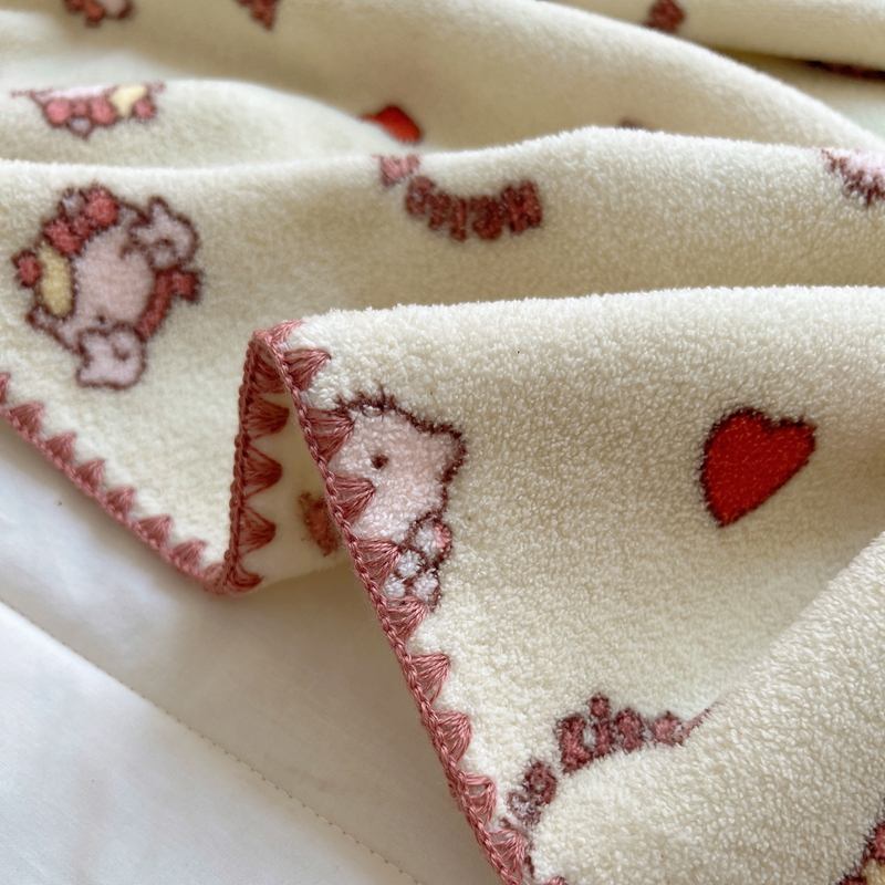 萝莉家纺 2025新款四季多功能双面宝宝绒暖肤毯米粒绒毛毯 小猫绿