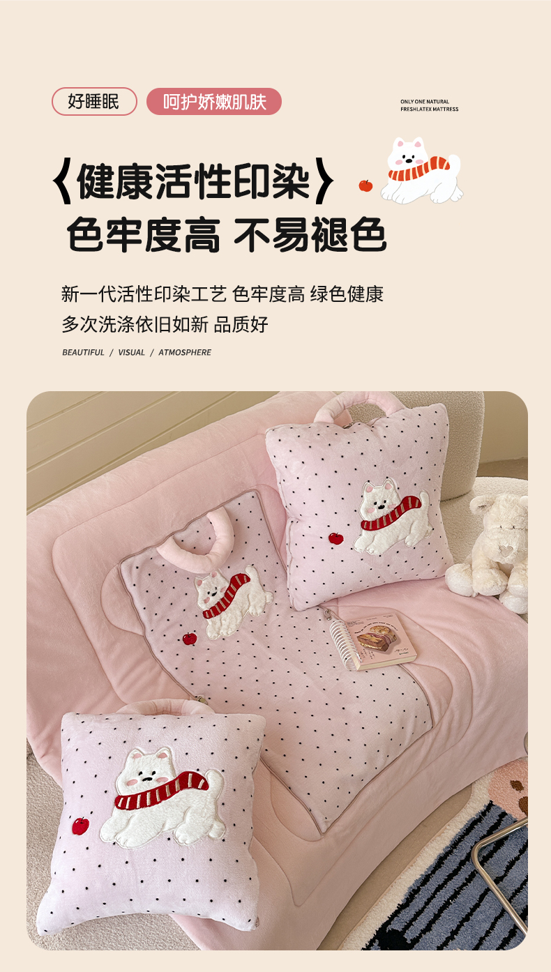 (总)多米家居 2025新款抱枕被-围巾小狗系列,围巾小狗-蜜桃奶霜,围巾小狗-薄荷绿,围巾小狗-海盐奶泡,围巾小狗-暖冬酒红,组合图仅供展示不可下单