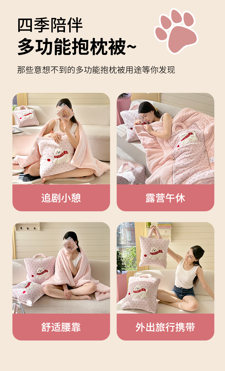 (总)多米家居 2025新款牛奶绒请开心抱枕被-Jellylove系列,组合图仅供参考不可下单,Jellylove-豹豹粉,Jellylove-豹豹蓝