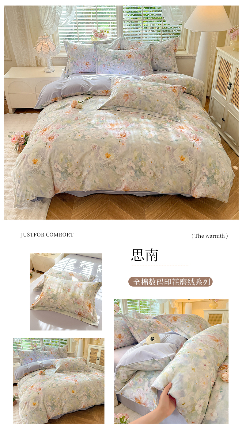 当前位置: 91家纺网 > 商品网购 > 床品套件 > 四件套 > 全棉普通四件套 > 巧玲珑 2025新款100%数码印花生态AB版四件套 思南