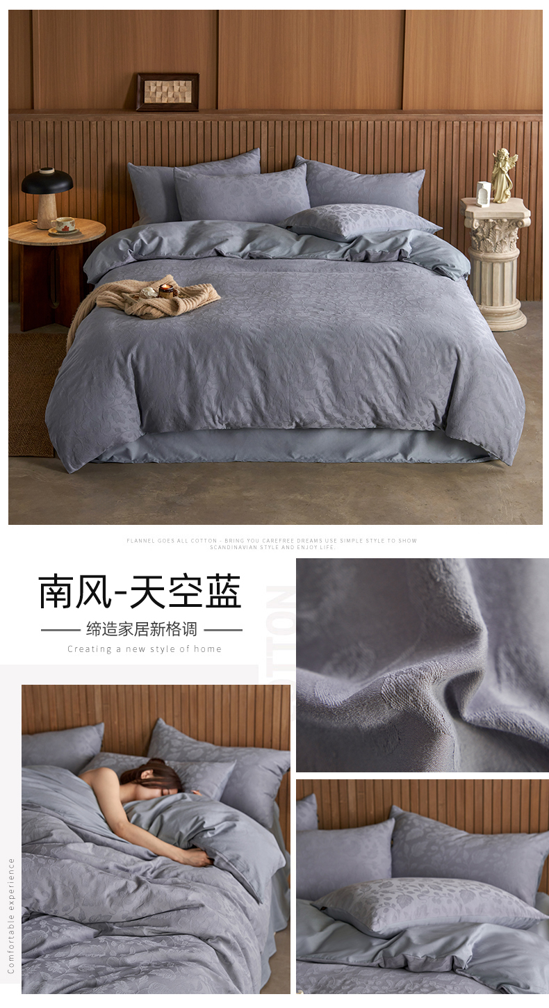 当前位置: 91家纺网 > 商品网购 > 床品套件 > 四件套 > 磨毛活性四件套 > 禾时 2025新款60s轻奢提花磨毛四件套—南风 南风-天空蓝