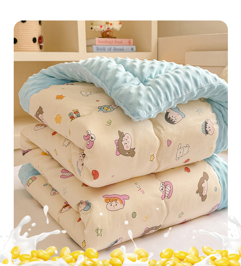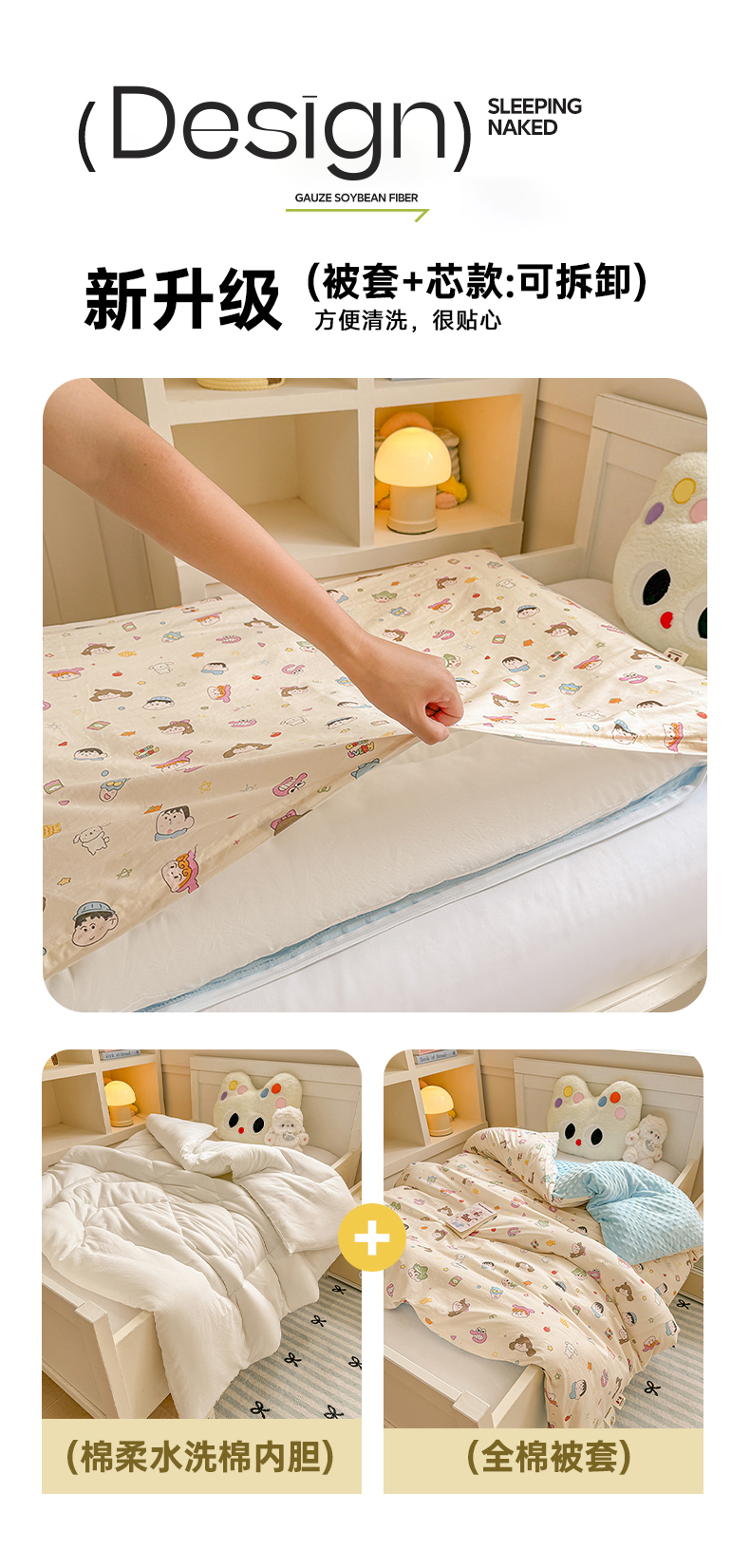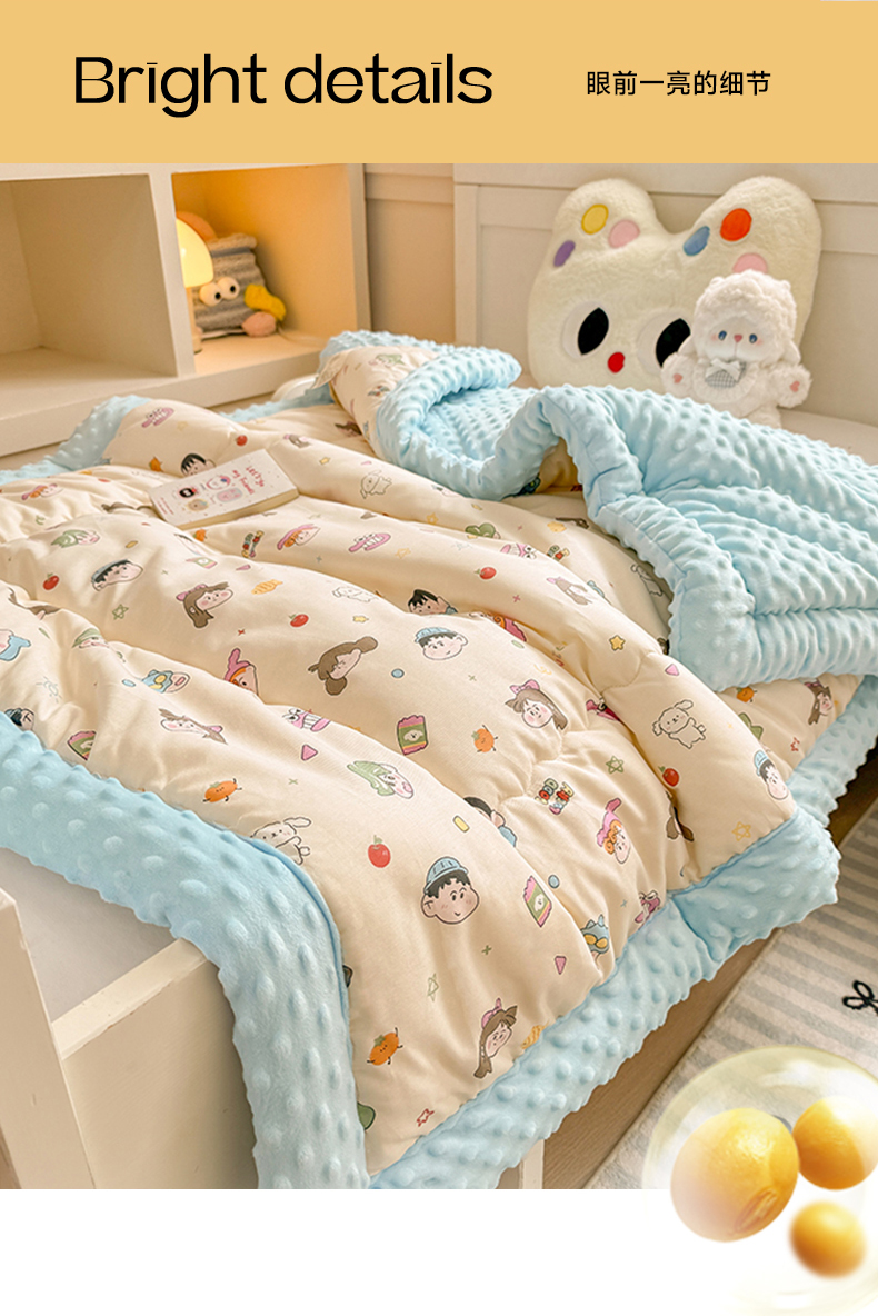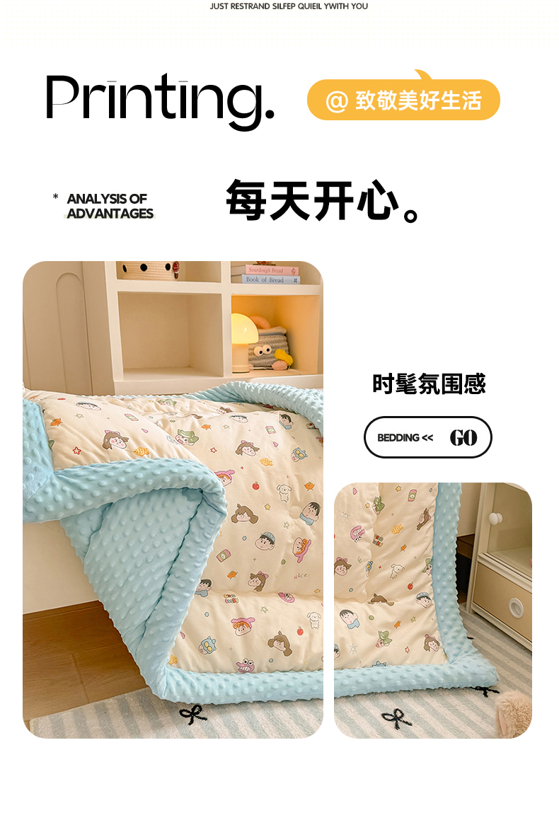 • 91家纺网 家纺一手货源 找家纺 梦依依 2025新款全棉小清新卡通印花系列儿童豆豆被子被芯 一体款-新新一家