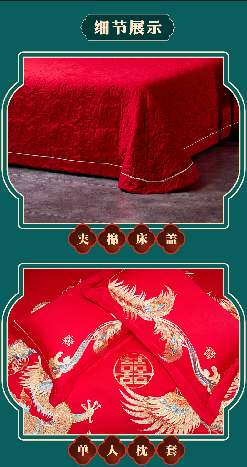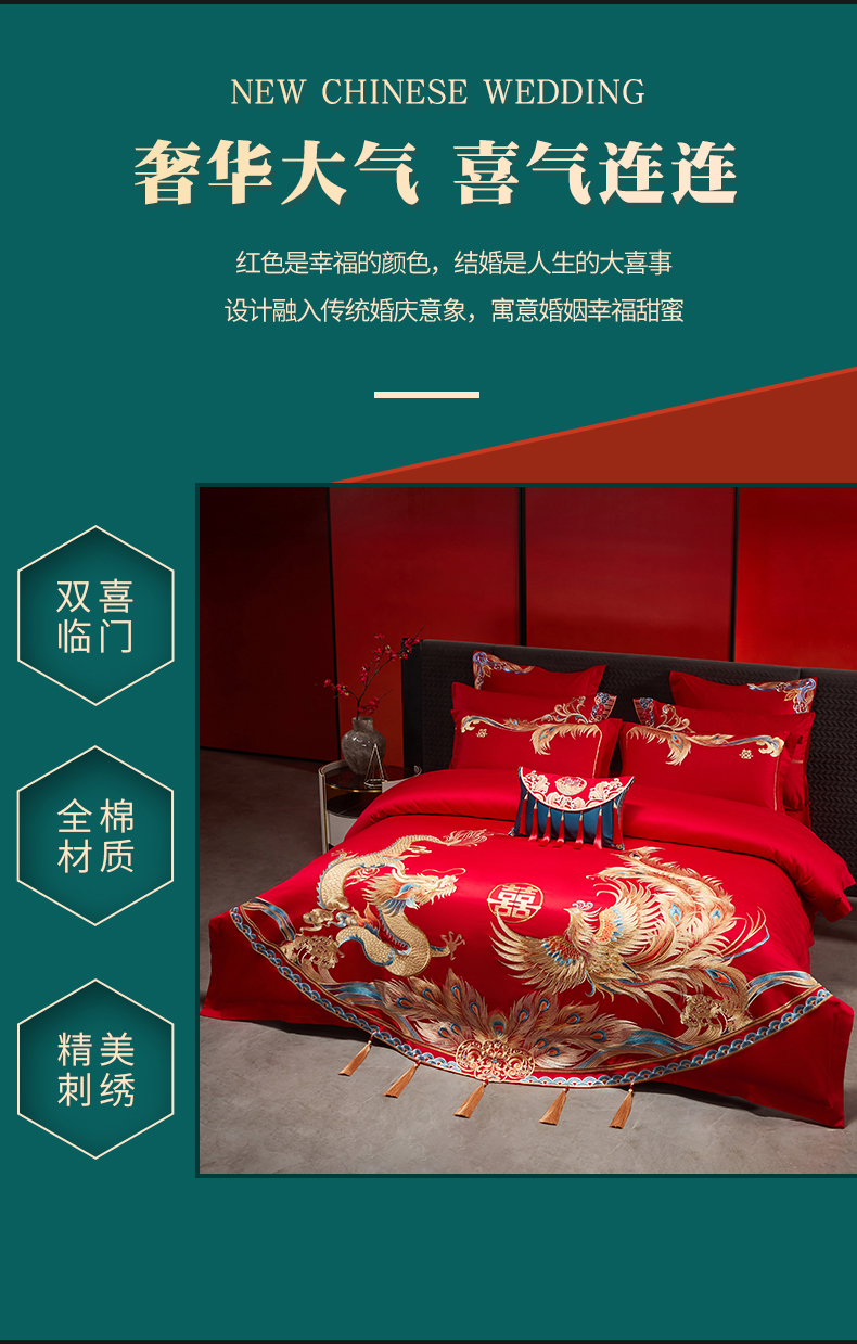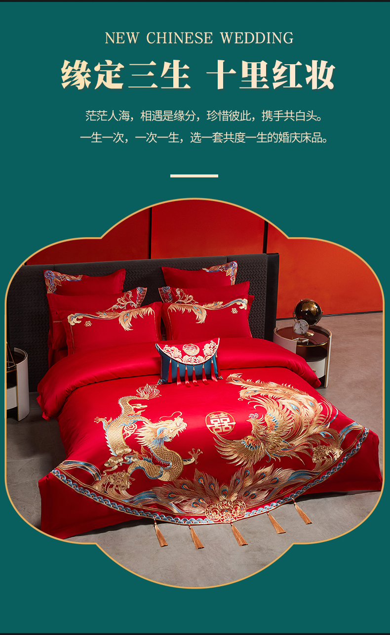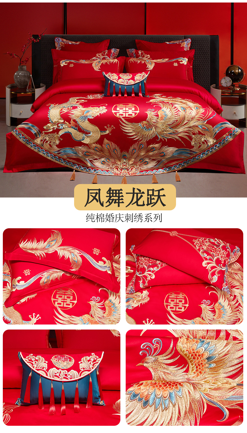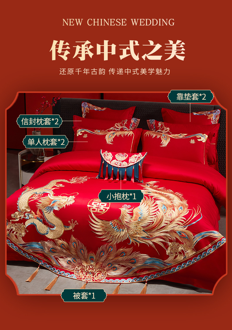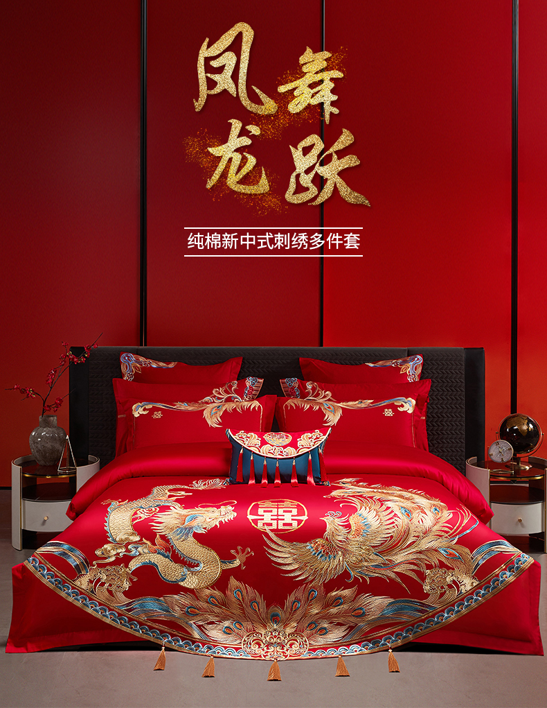 当前位置: 91家纺网 > 商品网购 > 床品套件 > 四件套 > 婚庆四件套 > 红番天婚庆 (控价)2025新款全棉新中式刺绣款婚庆四件套多件套 凤舞龙跃金