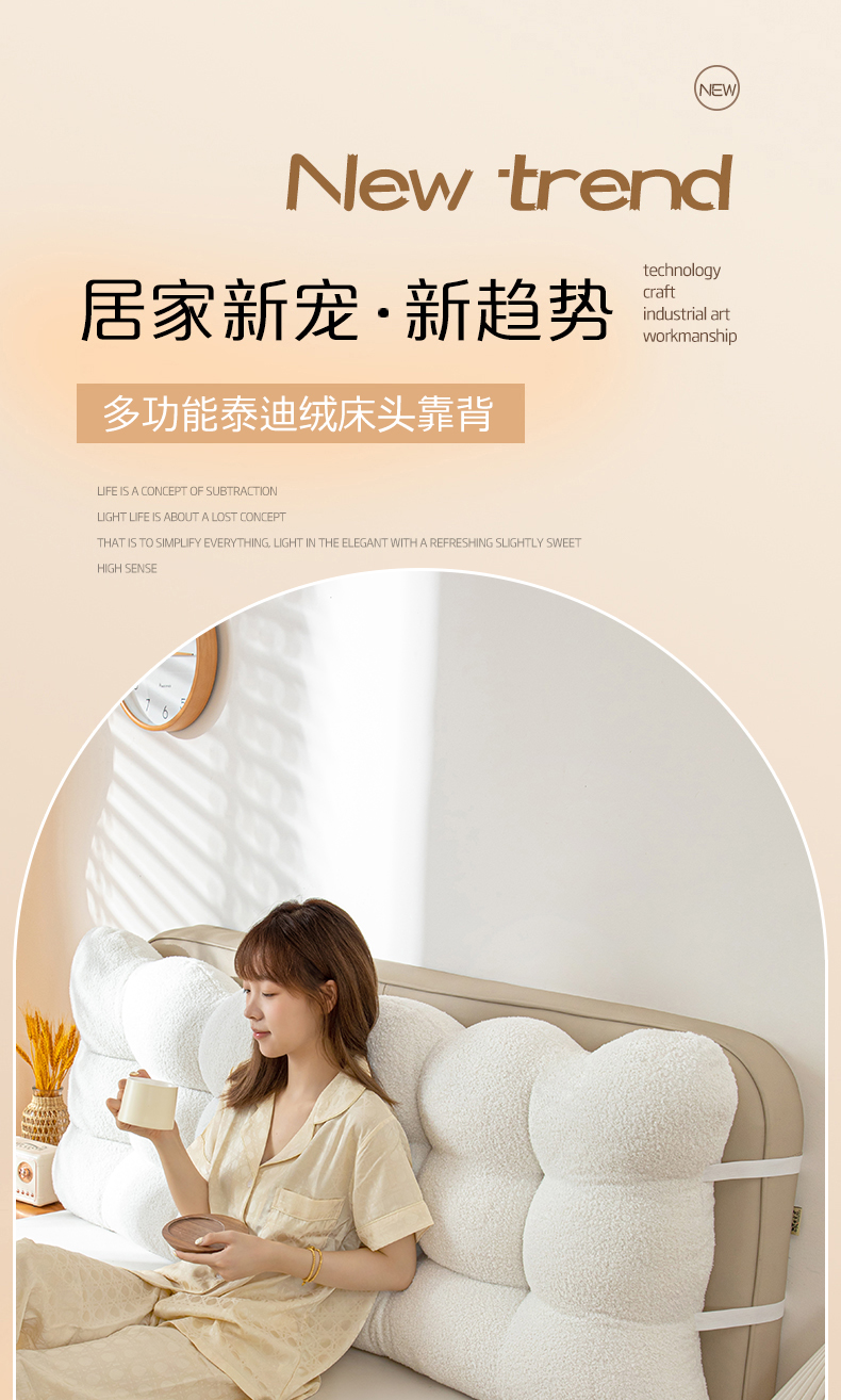 商品名称:沐沐家纺 2026新款泰迪绒小雪球床头靠背 小雪球-粉色