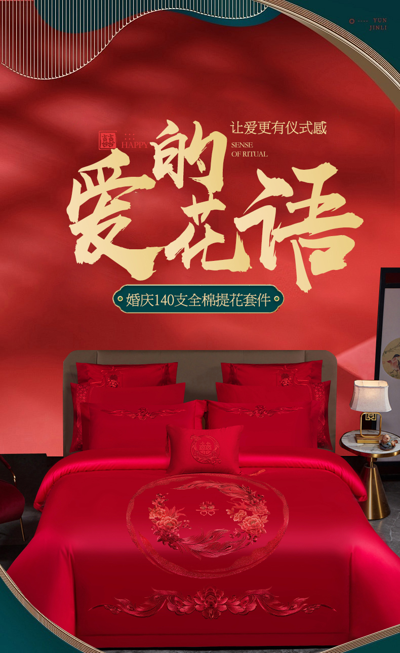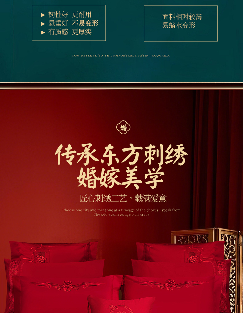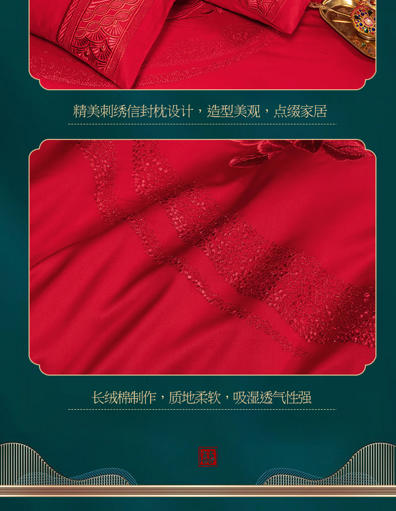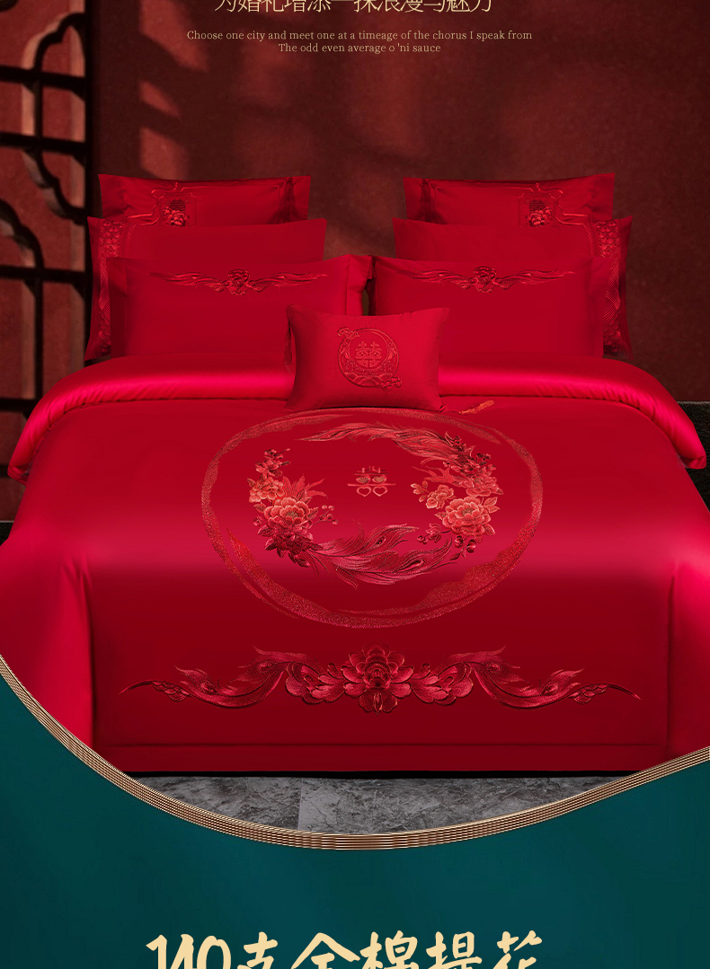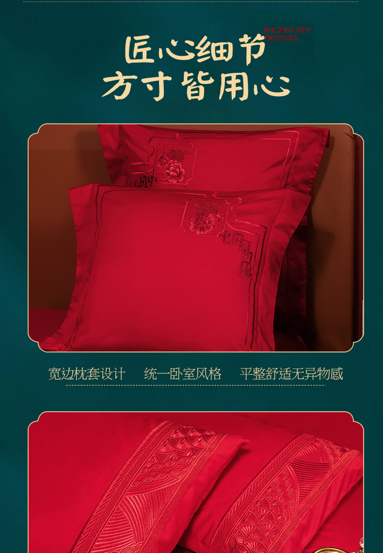 当前位置: 91家纺网 > 商品网购 > 床品套件 > 四件套 > 婚庆四件套 > 美娘阁 2025新款长绒棉全棉贡缎提花款新中式古典韵味精美刺绣婚庆四件套-系列二 爱的花语-红