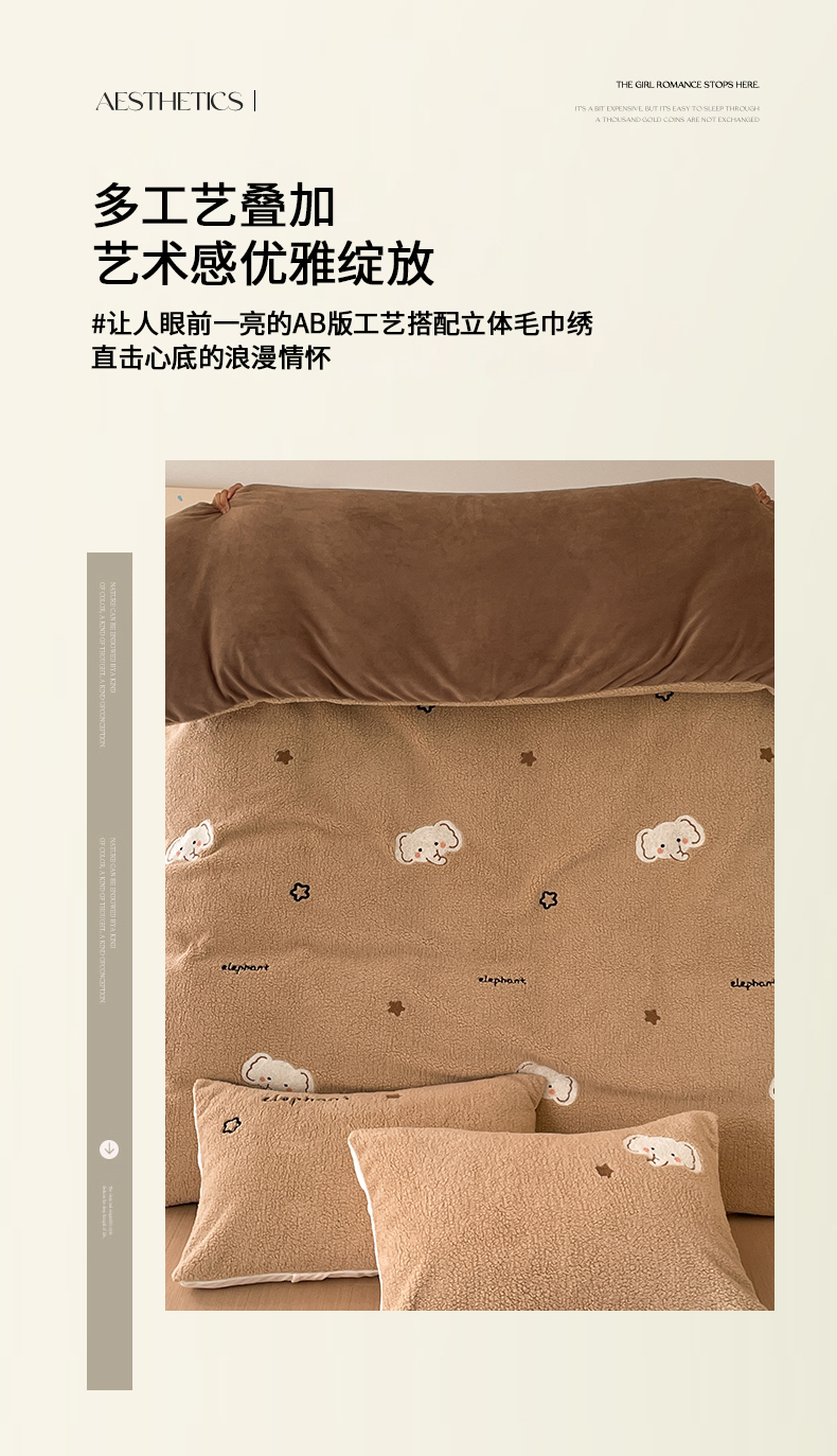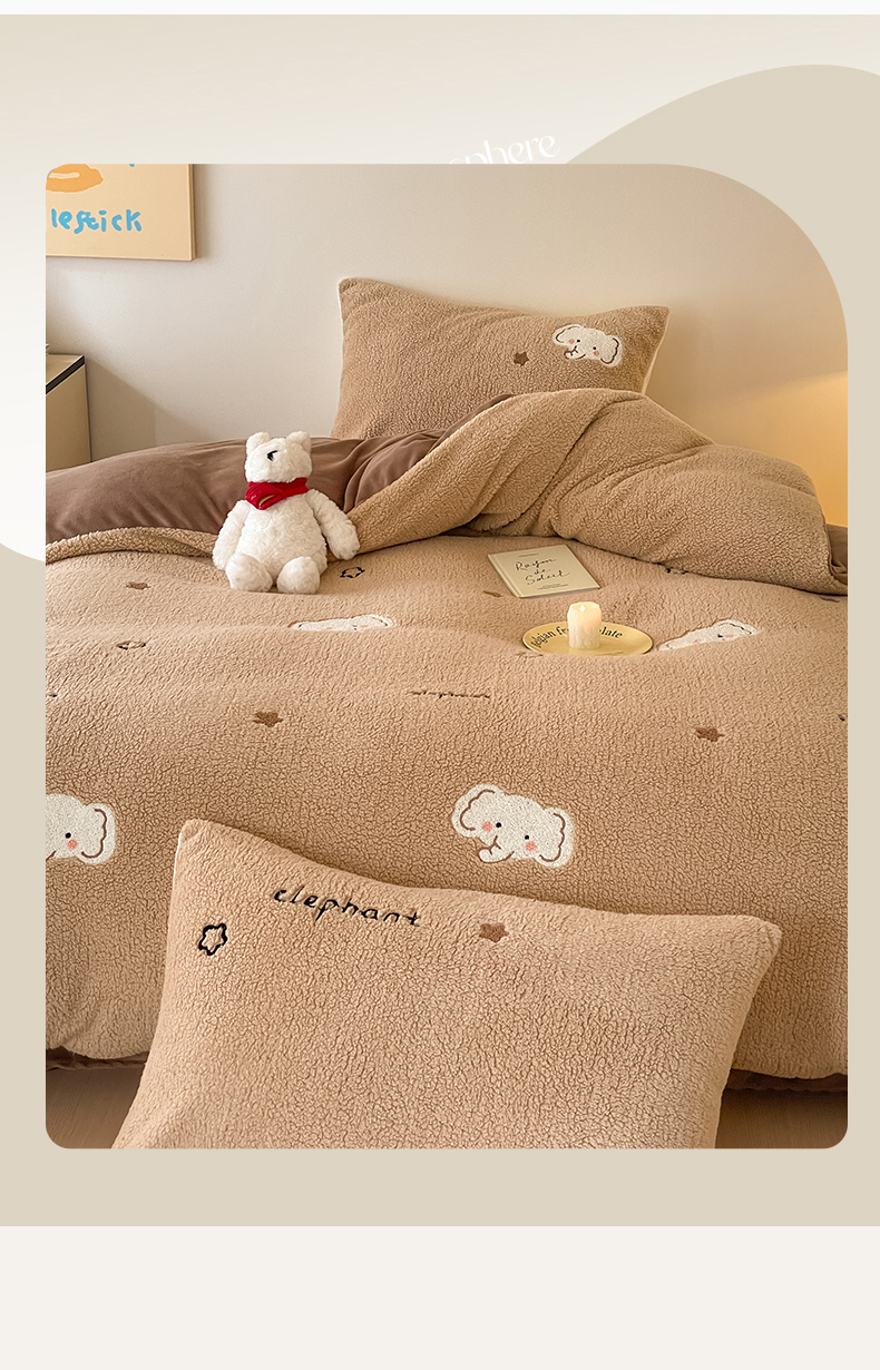川悦生活 2025新款泰迪绒毛巾绣卡通四件套 星空小象