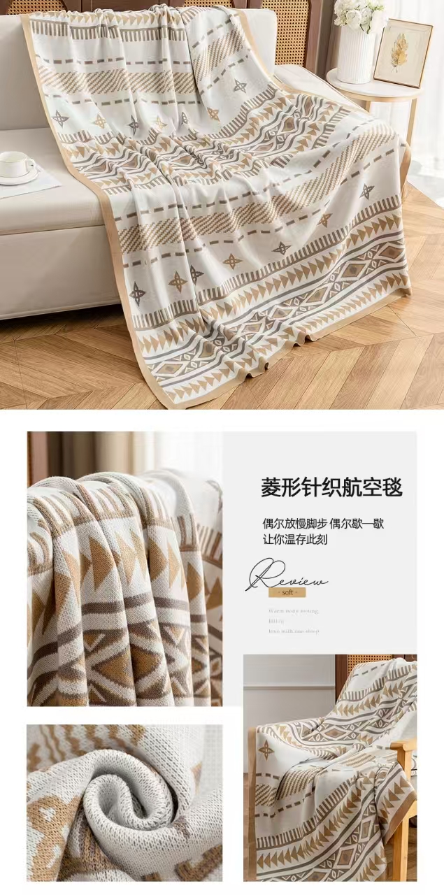 商品名称:悦织湾家纺 2025新款轻奢晴纶针织毛毯人字纹回字纹休闲时尚盖毯航空毯 人字纹浅卡其