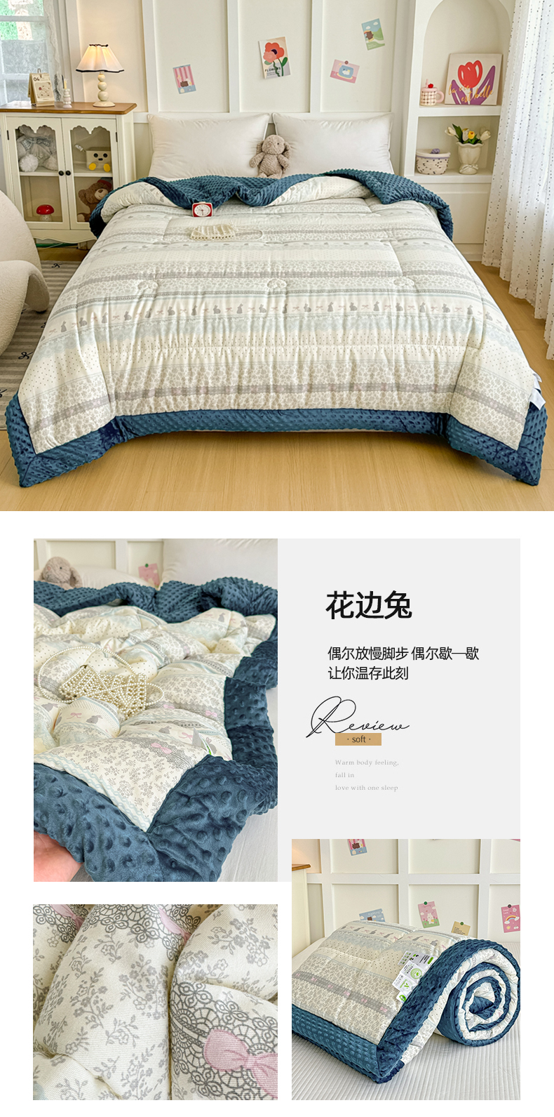 • 91家纺网 家纺一手货源 找家纺 宜梦家居 2025新款纯棉豆豆被冬被被子被芯 花边兔
