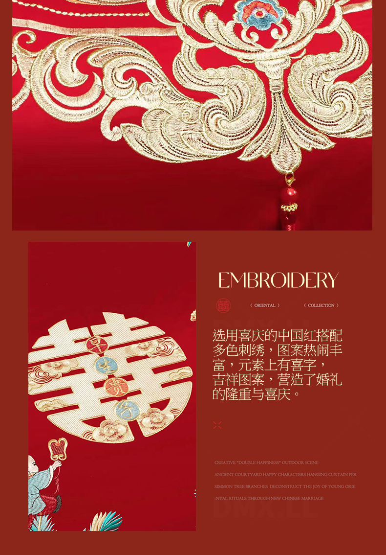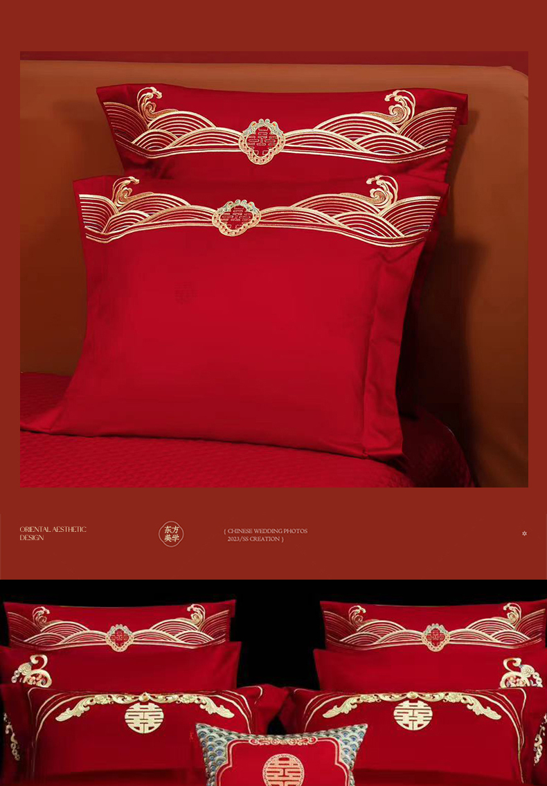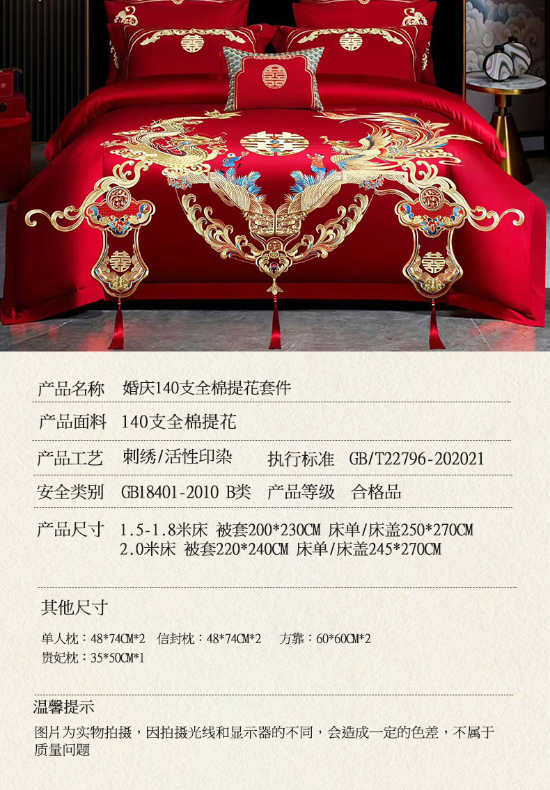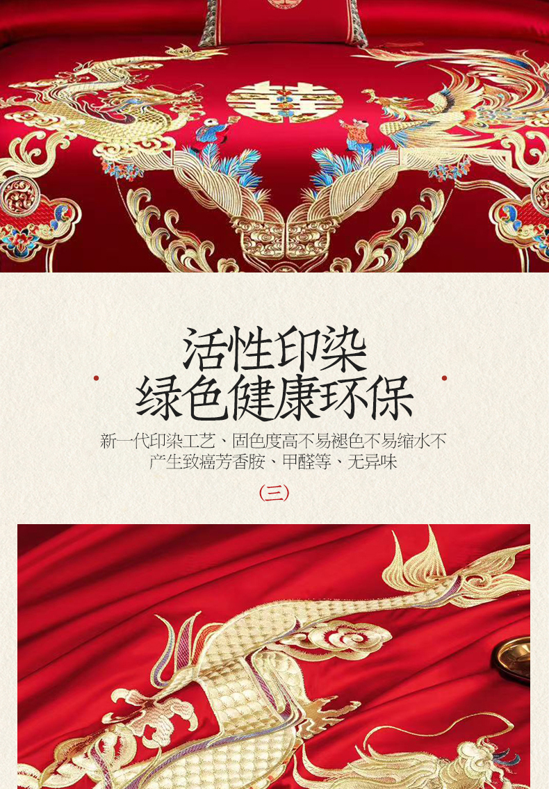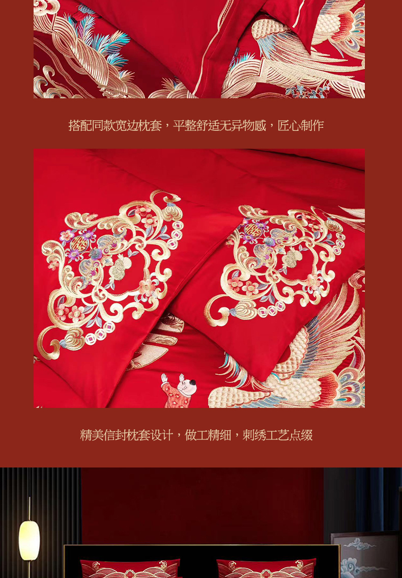 当前位置: 91家纺网 > 商品网购 > 床品套件 > 四件套 > 婚庆四件套 > 美娘阁 2025新款长绒棉全棉贡缎提花款新中式古典韵味精美刺绣婚庆四件套系列 龙凤喜嗣