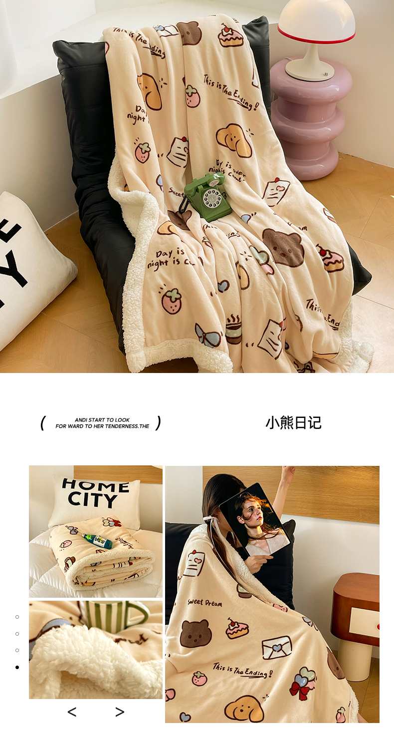 十里居 2025新款印花牛奶绒羊羔绒盖毯毛毯午休毯卡通多功能沙发毯 蓝蝴蝶结小猫