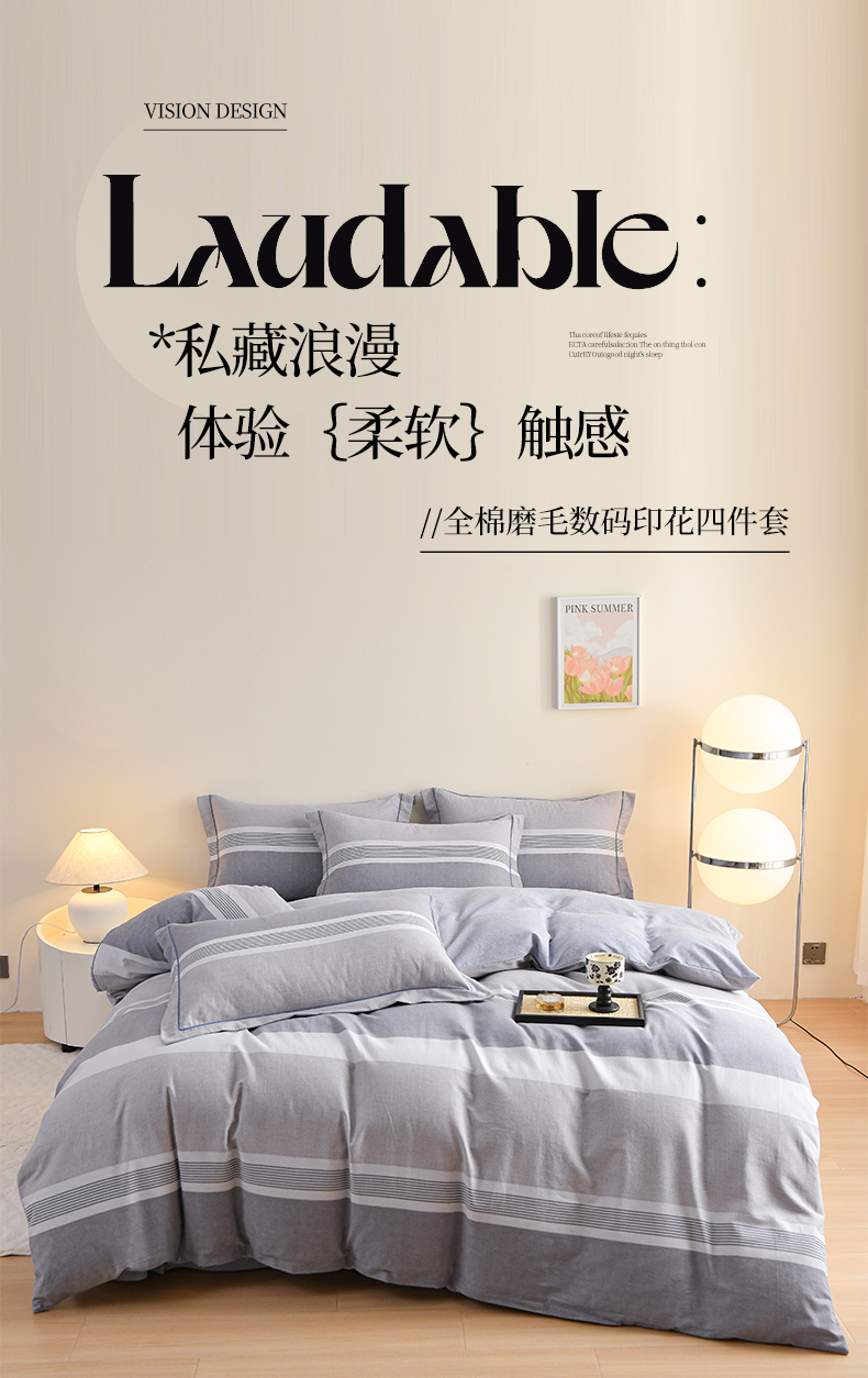 铭浩 2025新款全棉纯棉数码印花四件套 南烟-灰