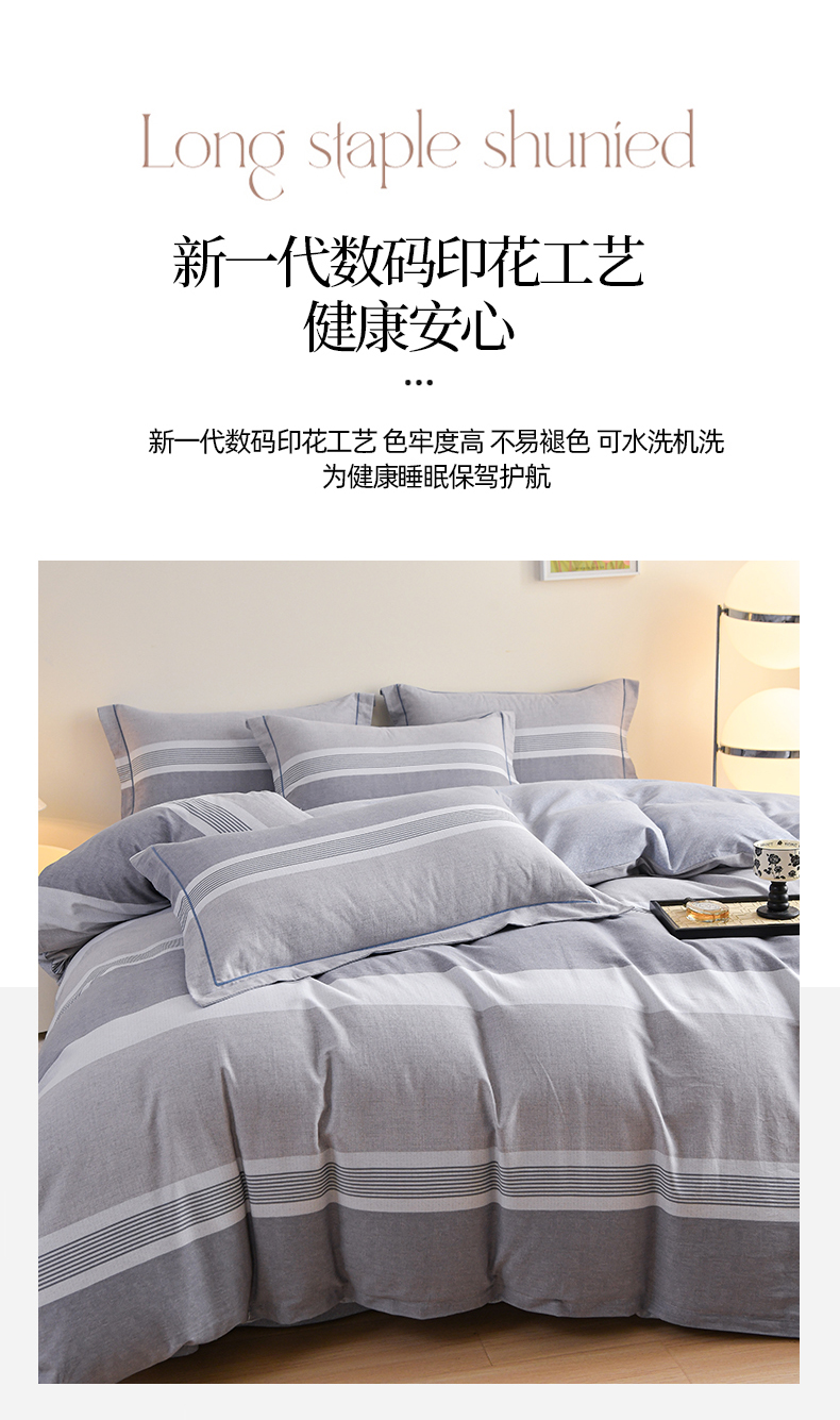 商品名称:铭浩 2025新款全棉纯棉数码印花四件套 南烟-灰