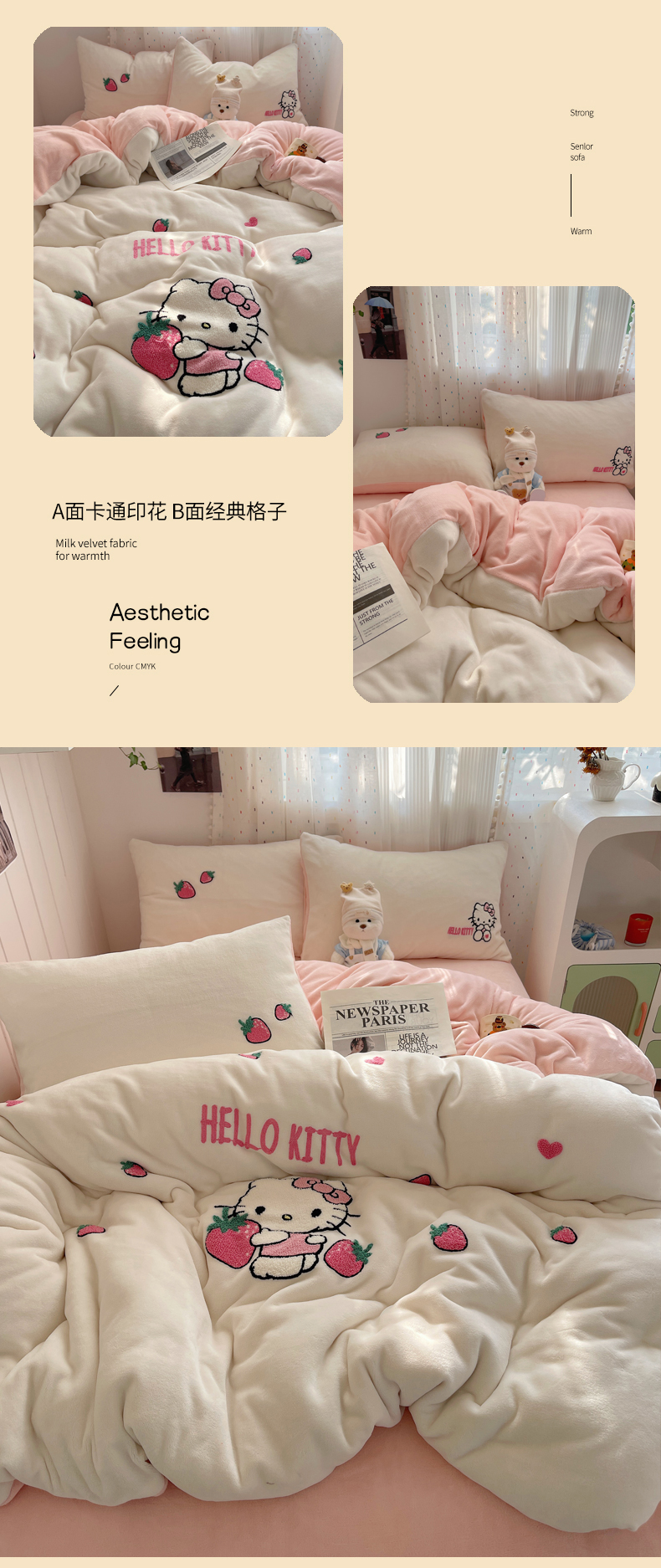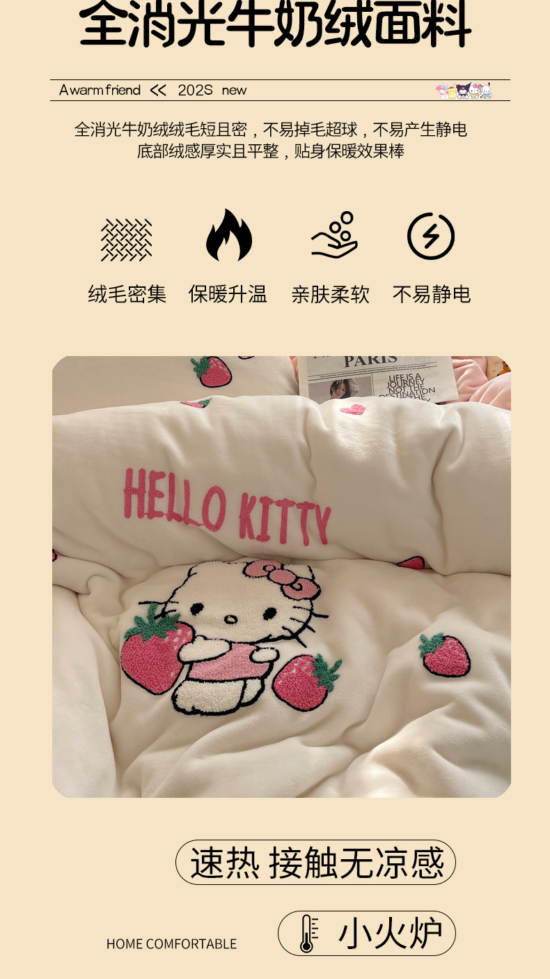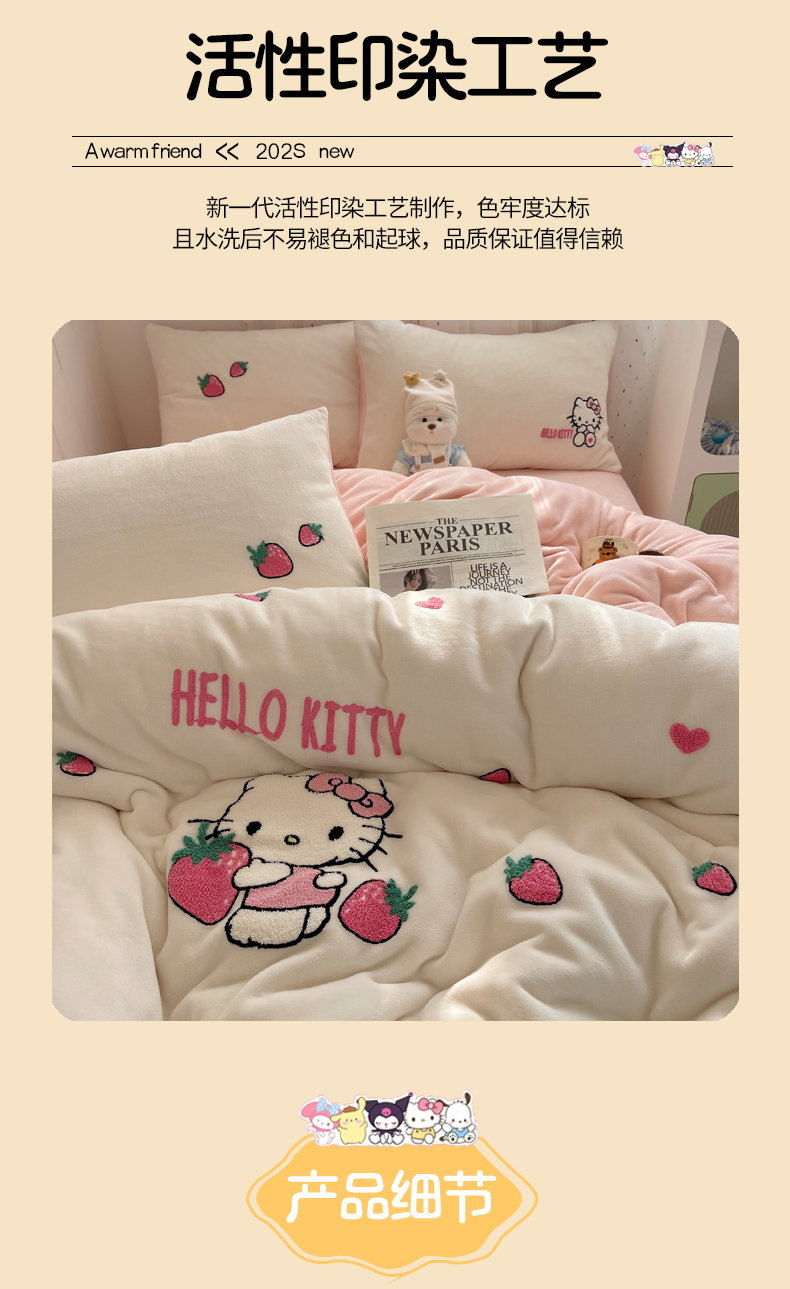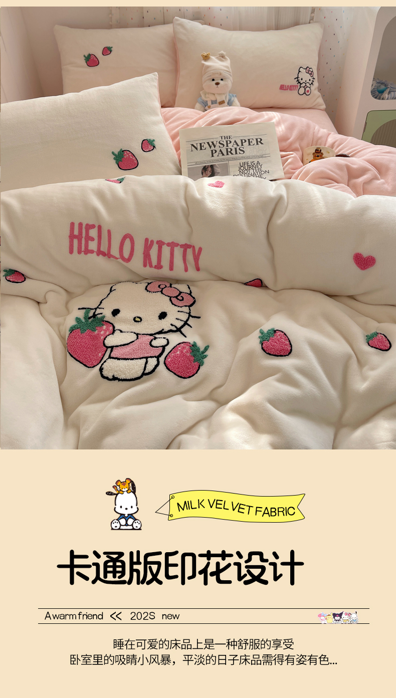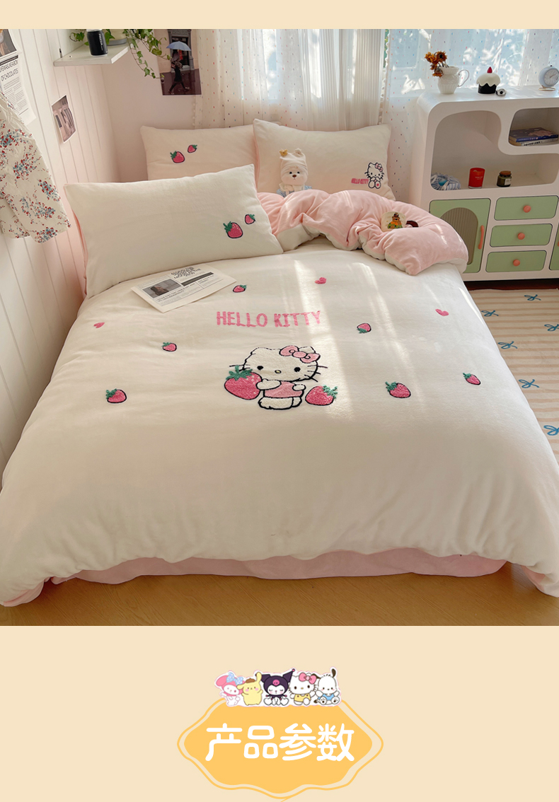 当前位置: 91家纺网 > 商品网购 > 床品套件 > 四件套 > 牛奶绒四件套 > 三朵家纺 2025新款绣花牛奶绒三丽鸥系列四件套 草莓公主KT