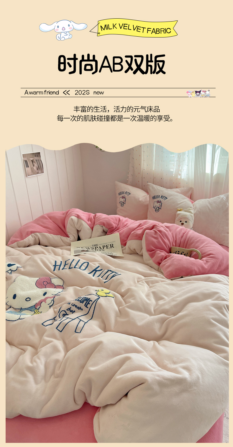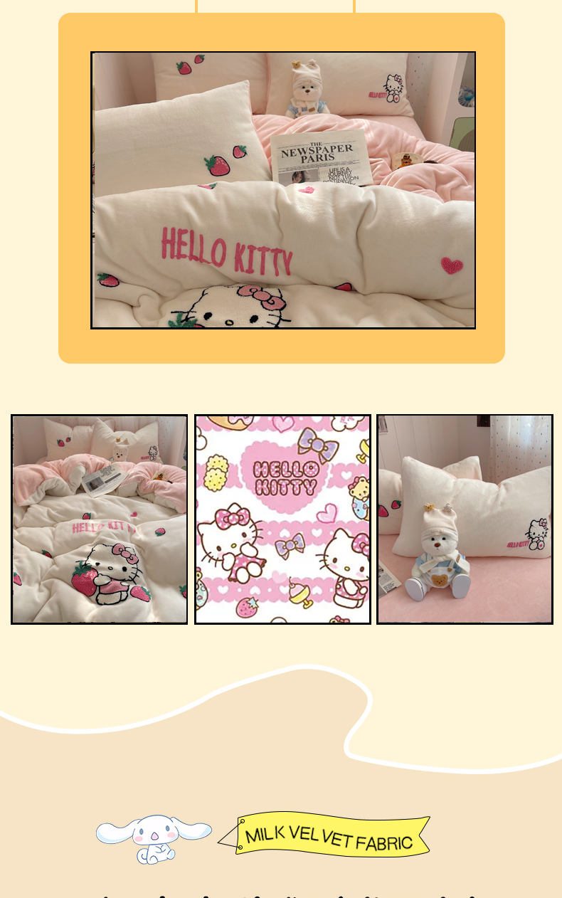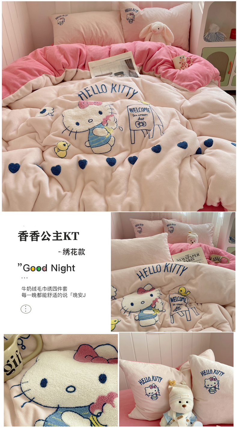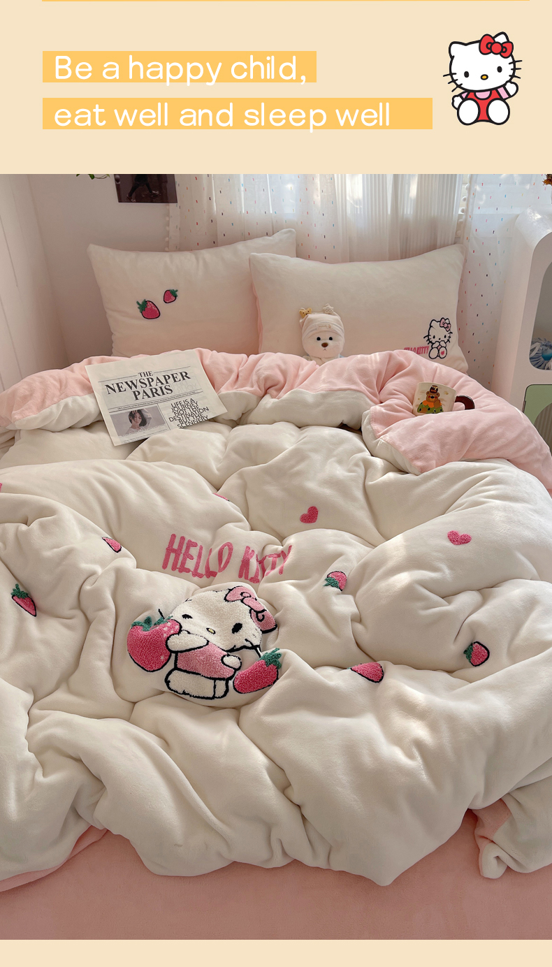 当前位置: 91家纺网 > 商品网购 > 床品套件 > 四件套 > 牛奶绒四件套 > 三朵家纺 2025新款绣花牛奶绒三丽鸥系列四件套 草莓公主KT
