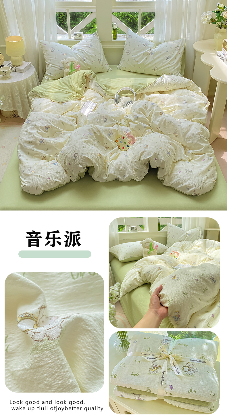 当前位置: 91家纺网 > 商品网购 > 床品套件 > 四件套 > 双层纱四件套 > 朵朵家纺 2025新款云感提花双层纱印花四件套 花眠咪咪