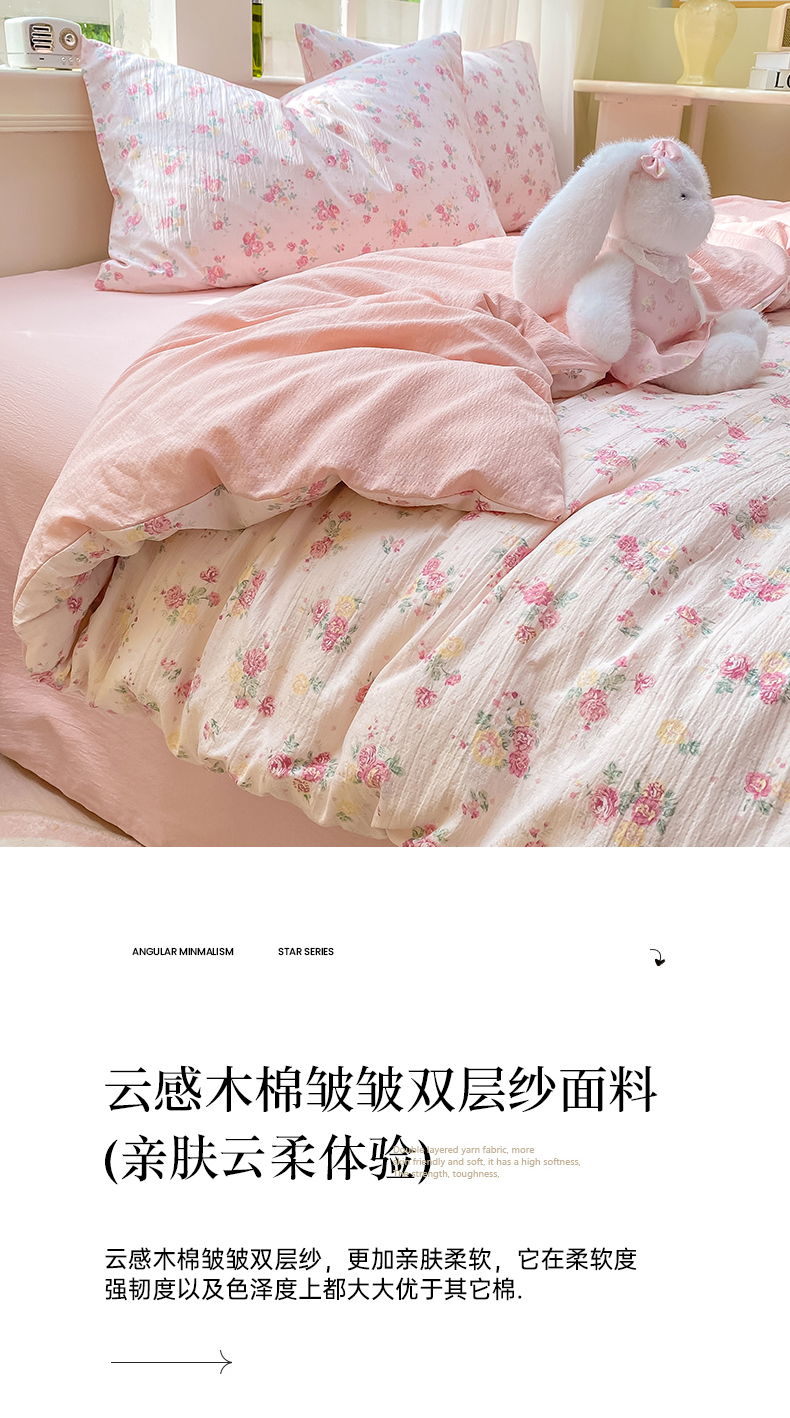 当前位置: 91家纺网 > 商品网购 > 床品套件 > 四件套 > 双层纱四件套 > 朵朵家纺 2025新款云感提花双层纱印花四件套 山花烂漫