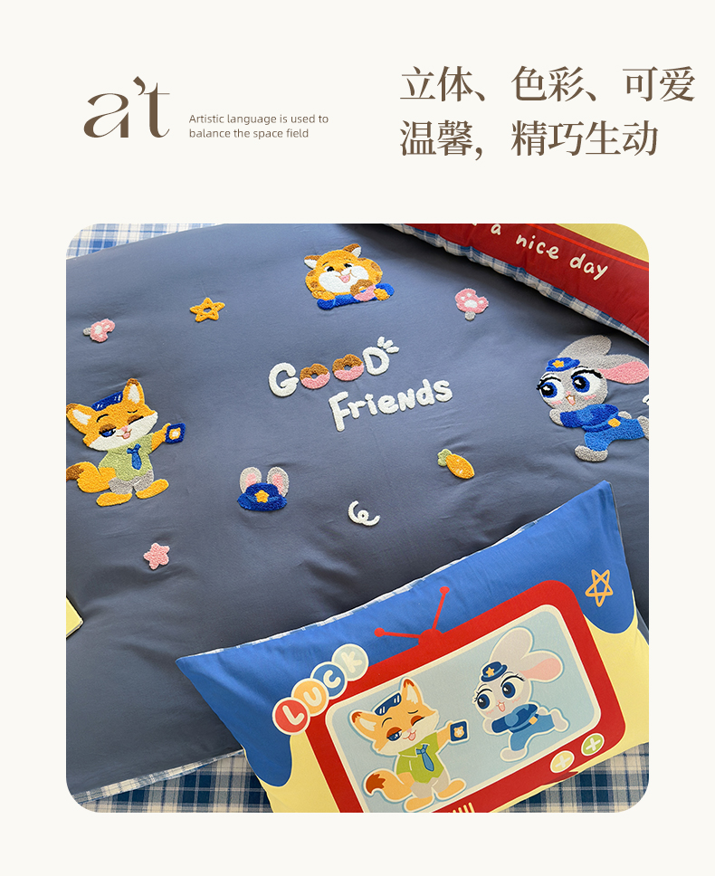 商品名称:优彩 2025新款数码印花全棉磨毛毛巾绣四件套 动物乌托邦