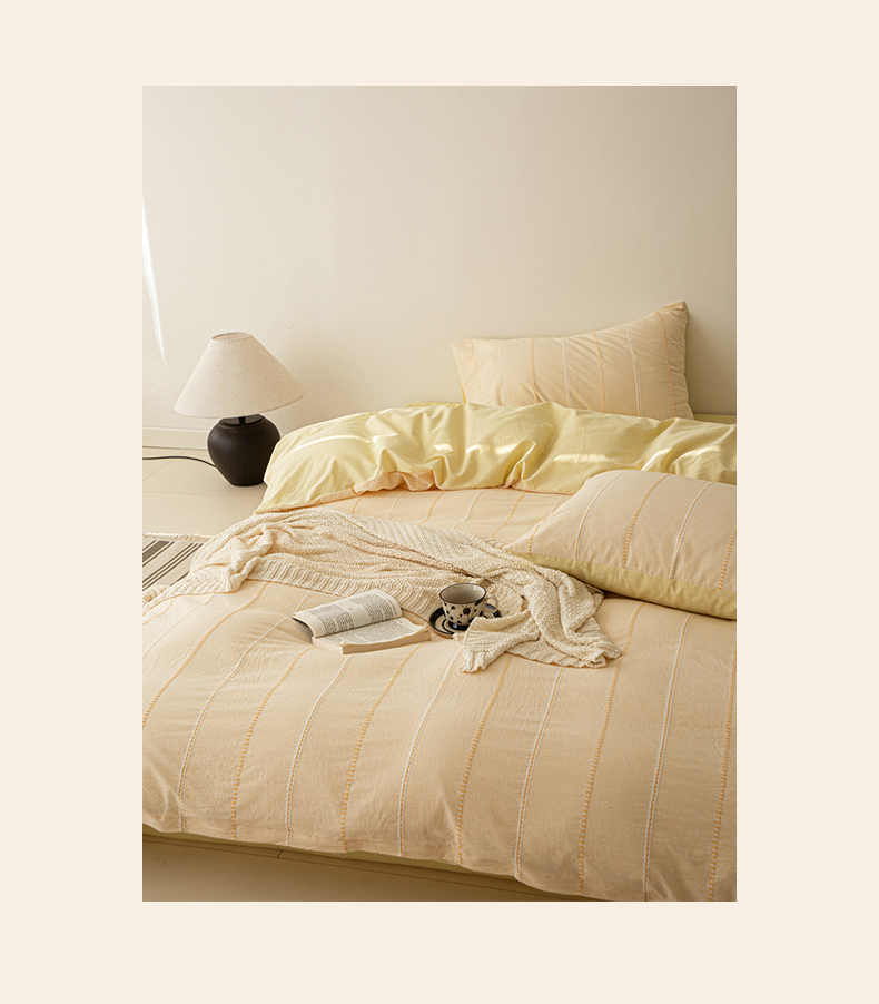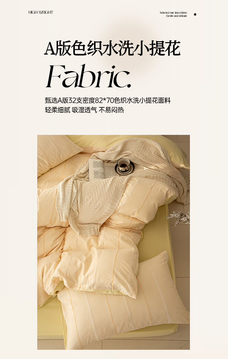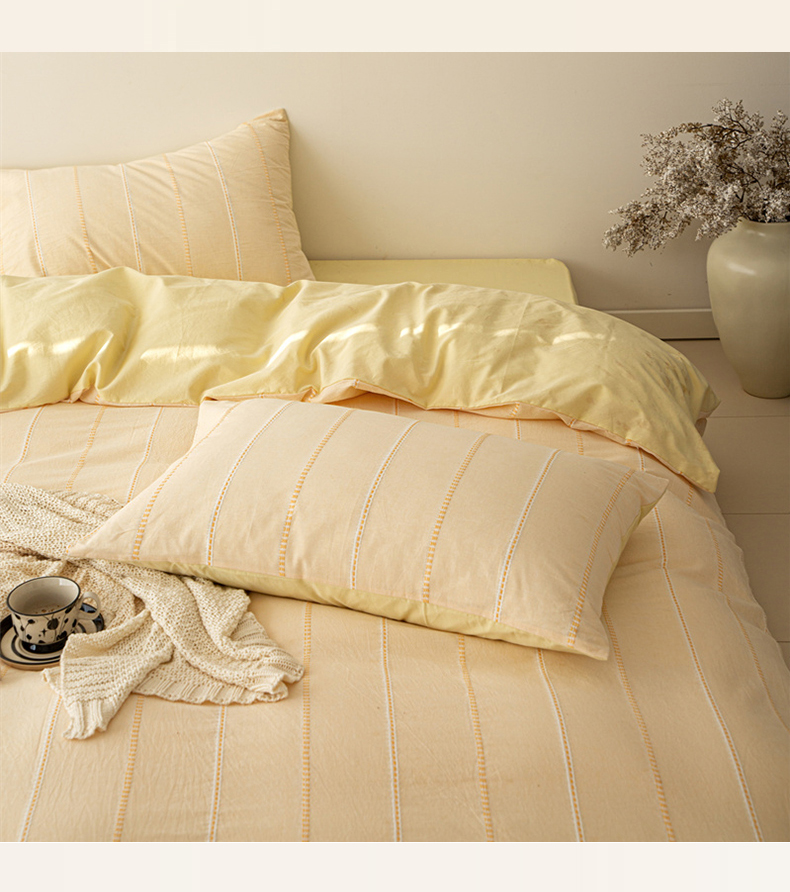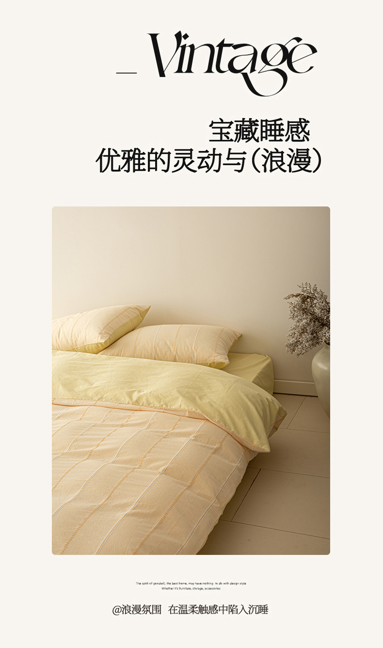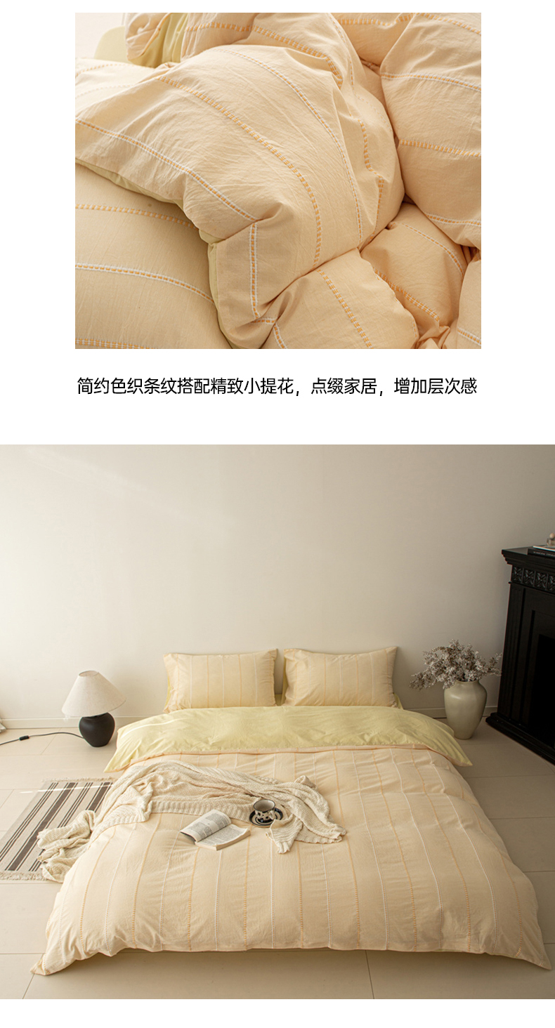 商品名称:棉眠 2025新款色织水洗小提花条纹四件套 序曲-黄