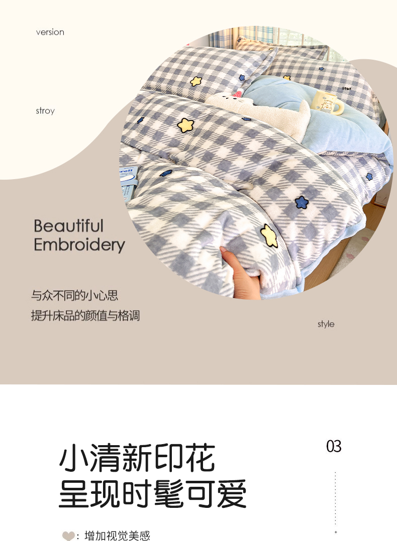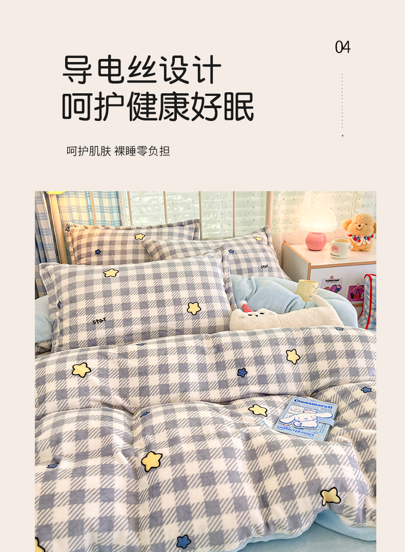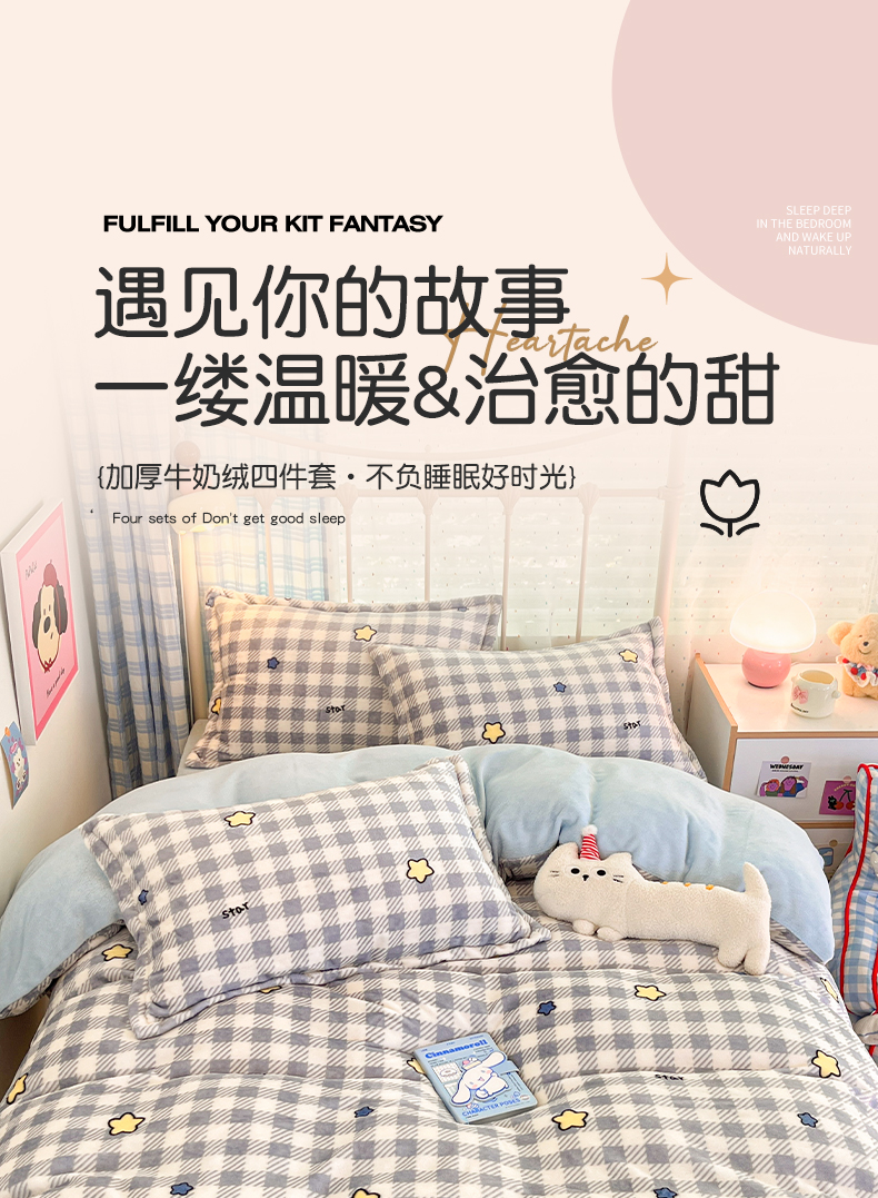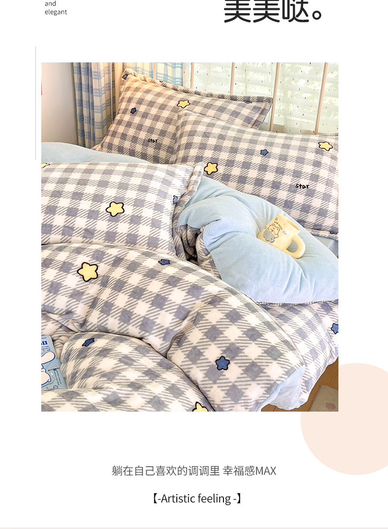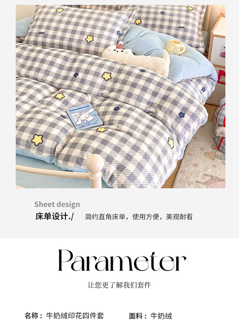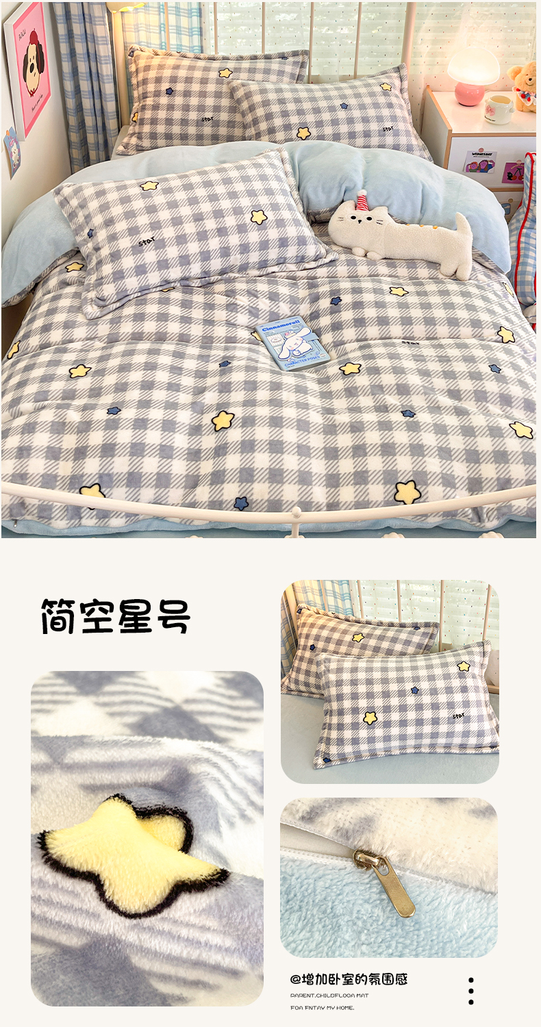 当前位置: 91家纺网 > 商品网购 > 床品套件 > 四件套 > 牛奶绒四件套 > 川悦生活 2025新款加厚牛奶绒印花四件套 简空星号