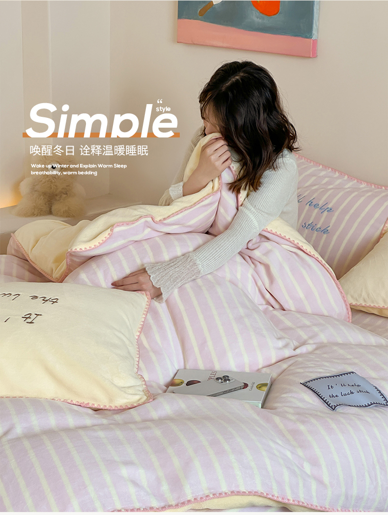 (总)桃子家居 2025新款A类ins三角针撞色格子条纹织标高级刺绣小清新加厚牛奶绒系列四件套