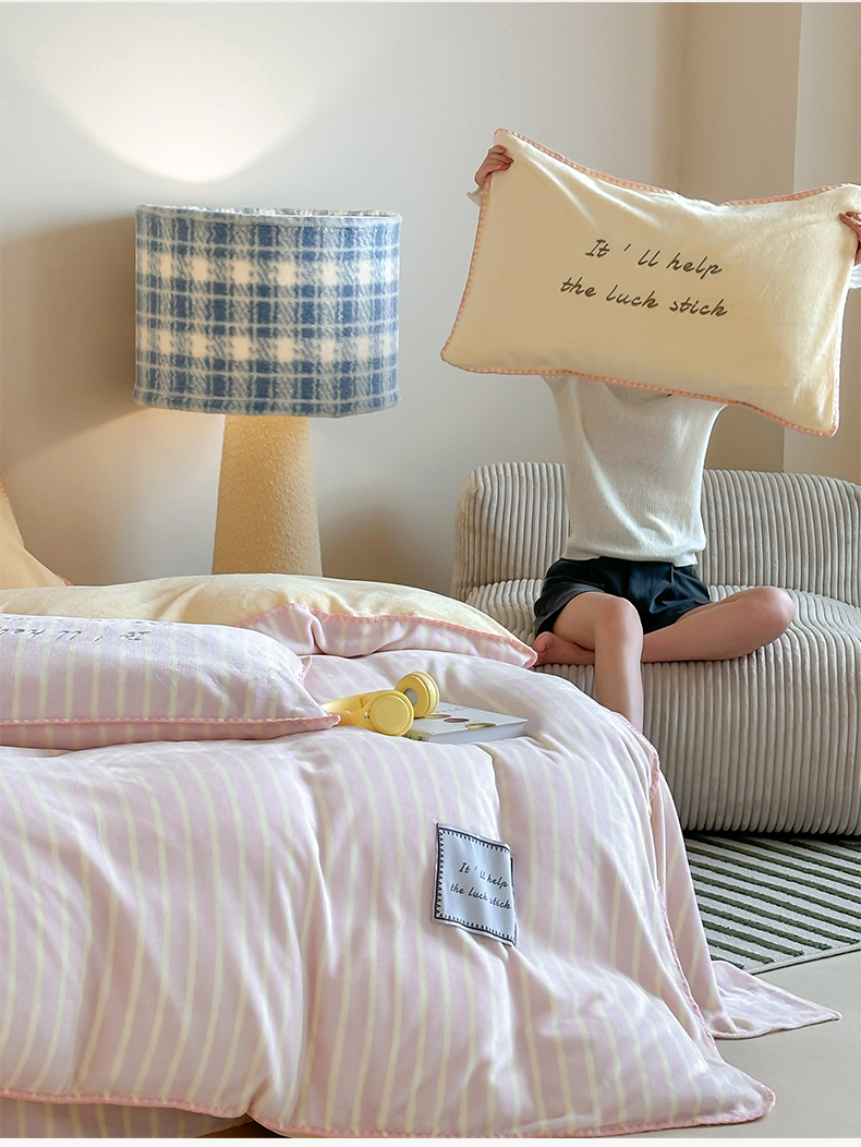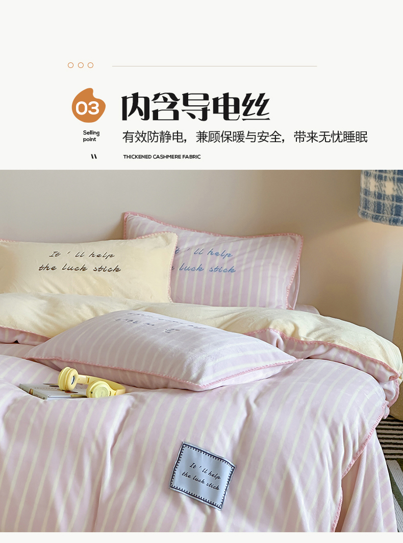 商品名称:(总)桃子家居 2025新款A类ins三角针撞色格子条纹织标高级刺绣小清新加厚牛奶绒系列四件套