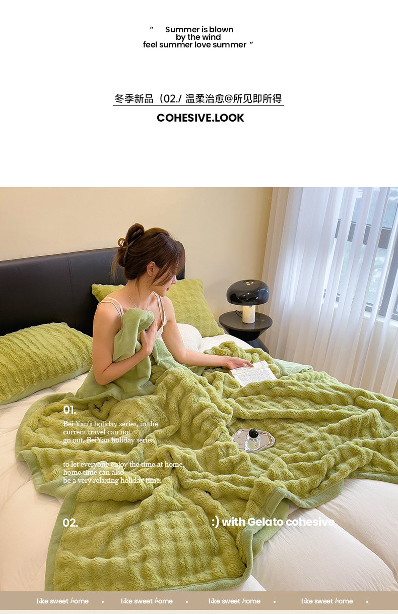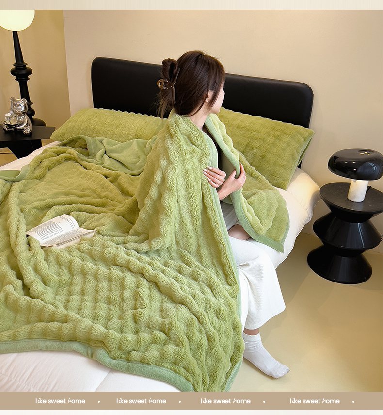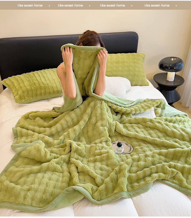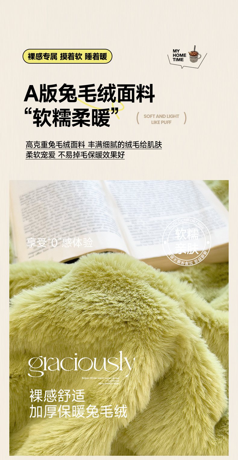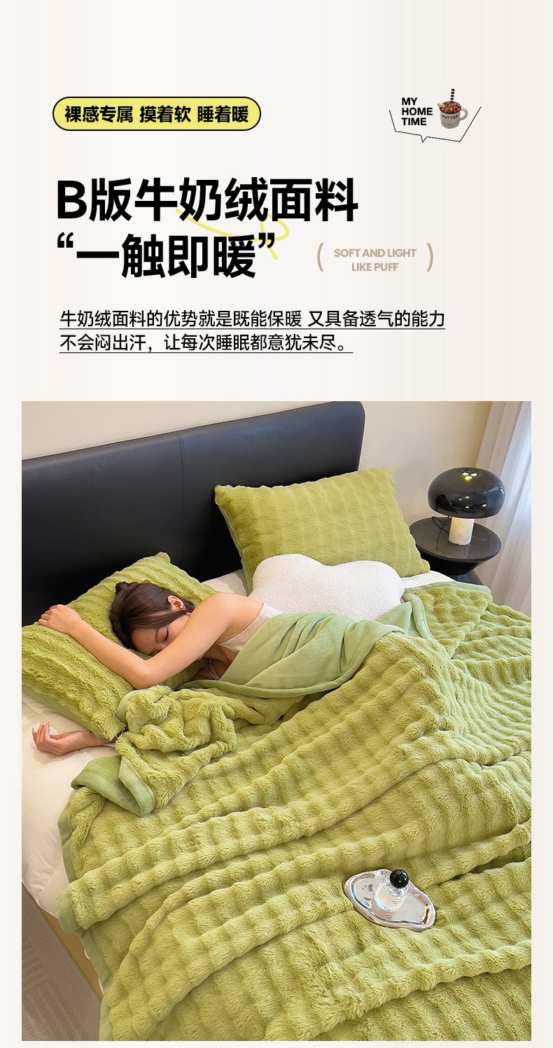 摩妮卡 2025新款热款直播600克大泡泡兔毛复合毛毯牛奶绒 纯色奶绿