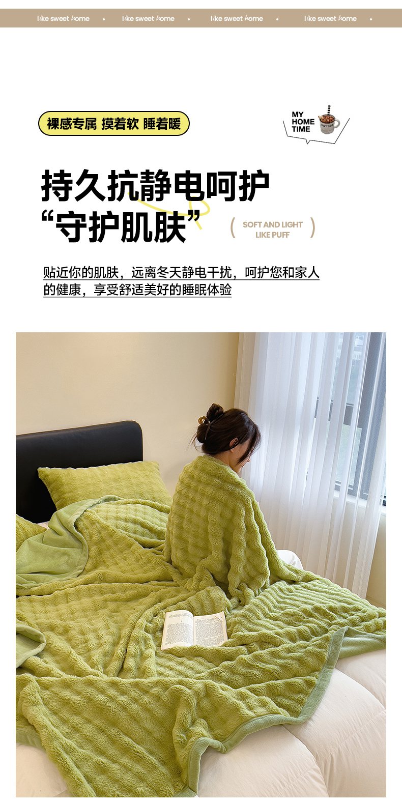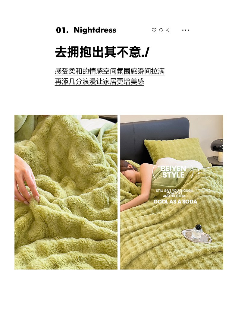 商品名称:摩妮卡 2025新款热款直播600克大泡泡兔毛复合毛毯牛奶绒 纯色奶绿