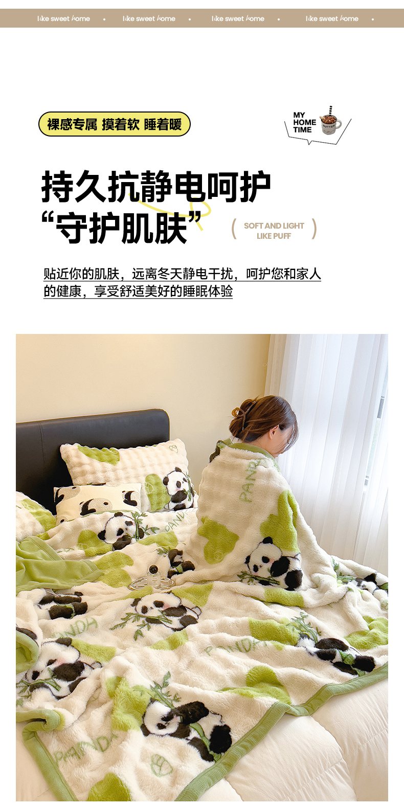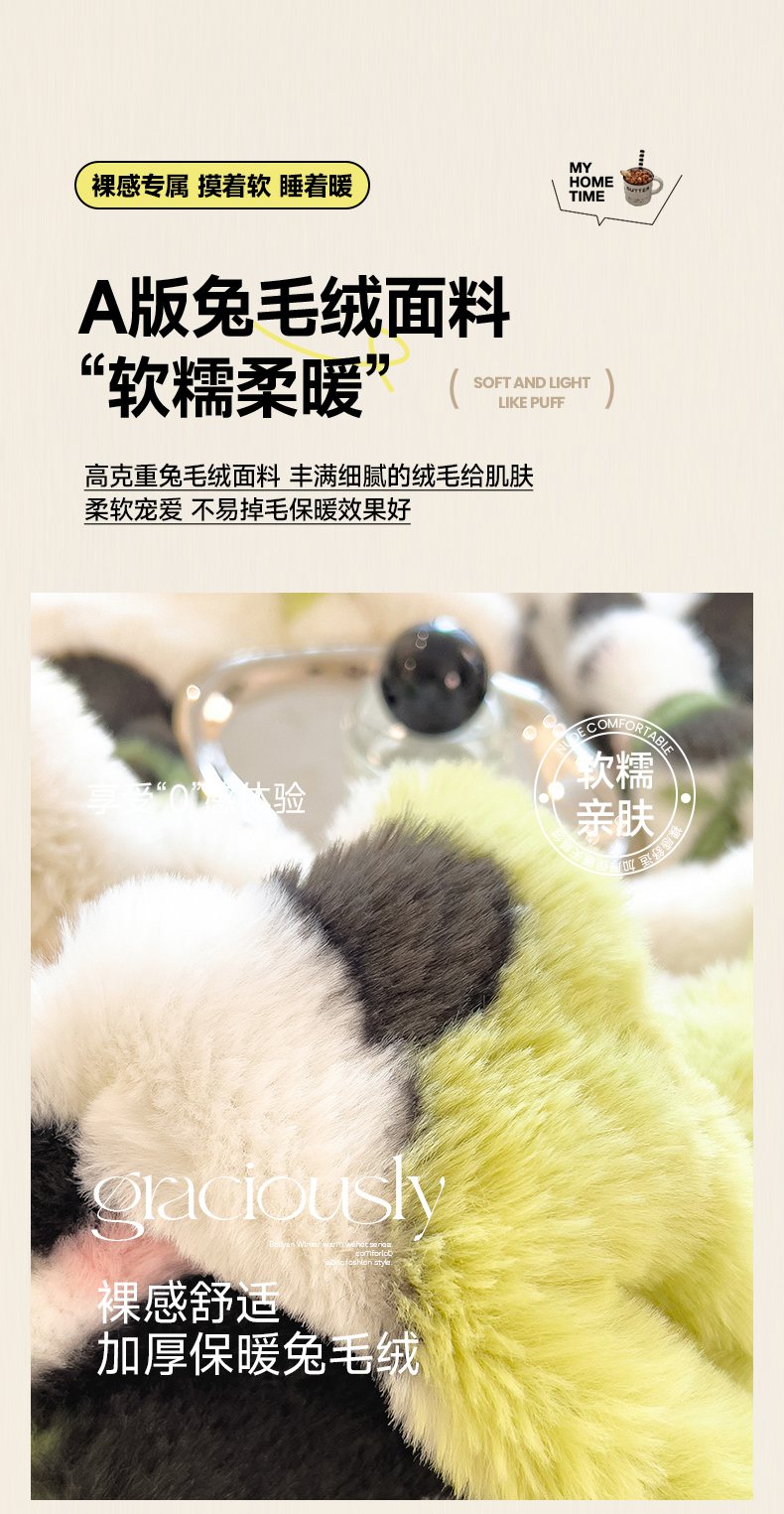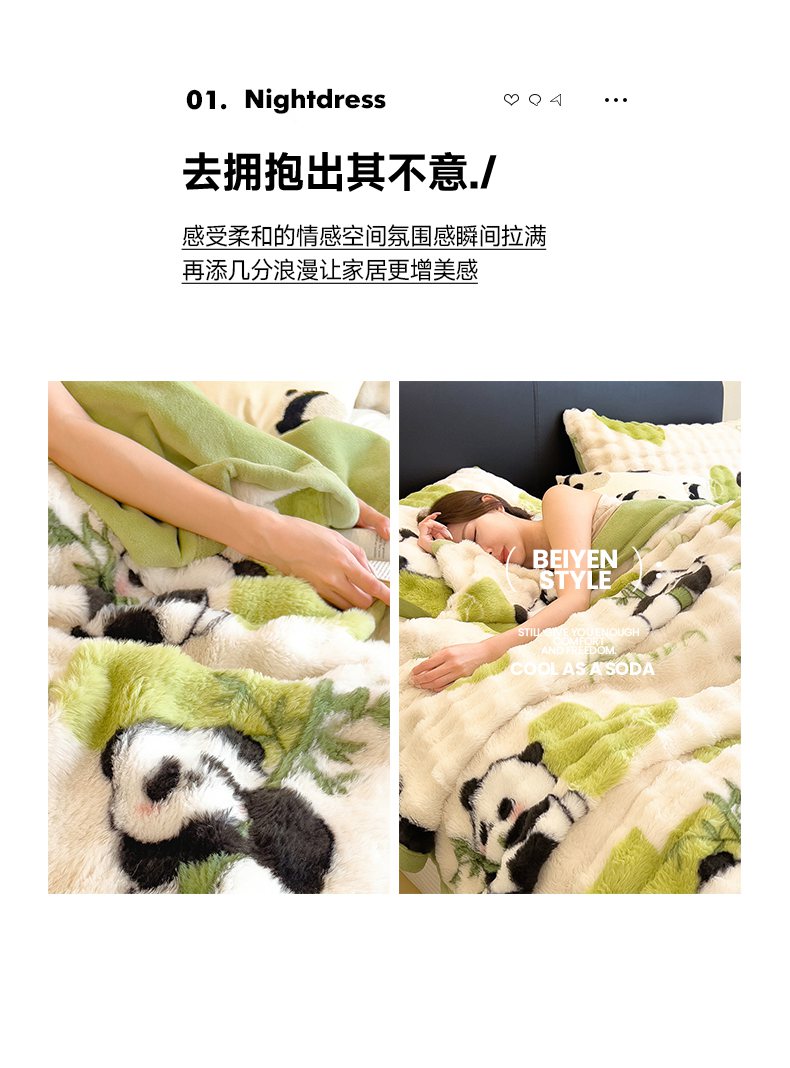 商品名称:摩妮卡 2025新款热款直播600克大泡泡兔毛复合毛毯牛奶绒 熊猫噗噗