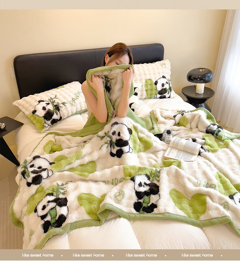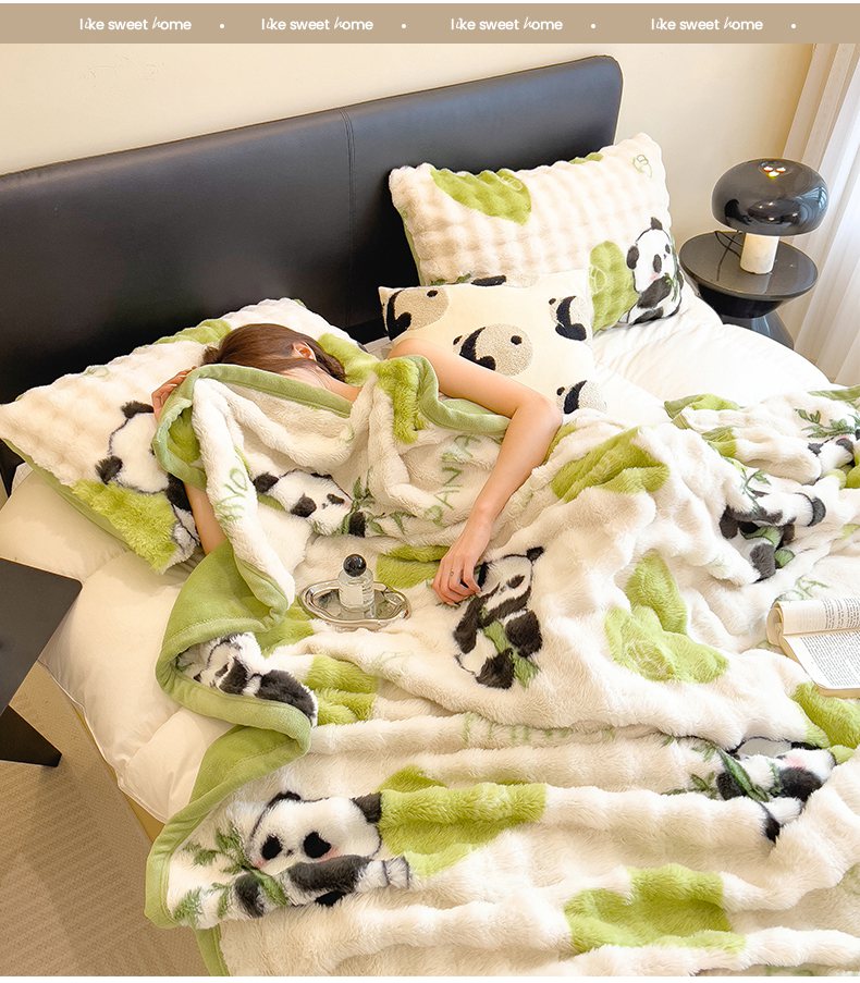 摩妮卡 2025新款热款直播600克大泡泡兔毛复合毛毯牛奶绒 熊猫噗噗